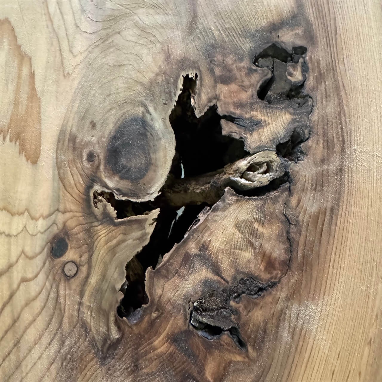 節やワレ、カケ、虫の空けた穴などもデザインや嗜好の一部として、既製品にはない自然素材にこそある味、とご理解していただきたく思います。