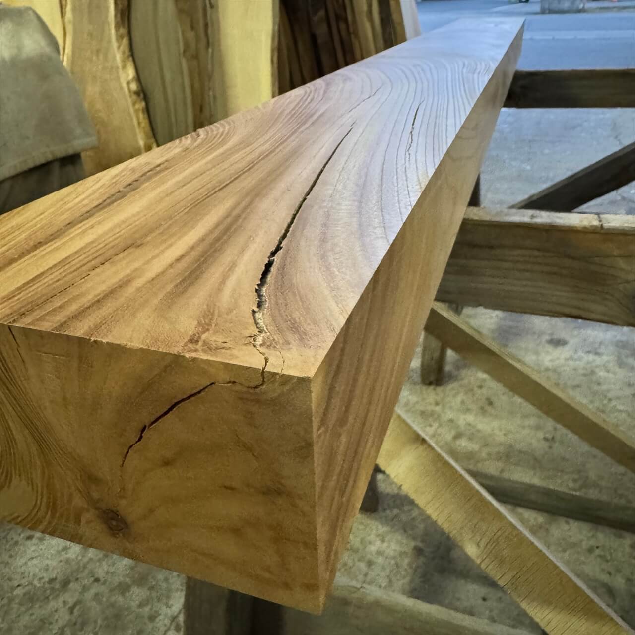 初めから割れや反り、木の皮が付いていたり、大きなキズ、汚れなども入っているとお考え下さい。