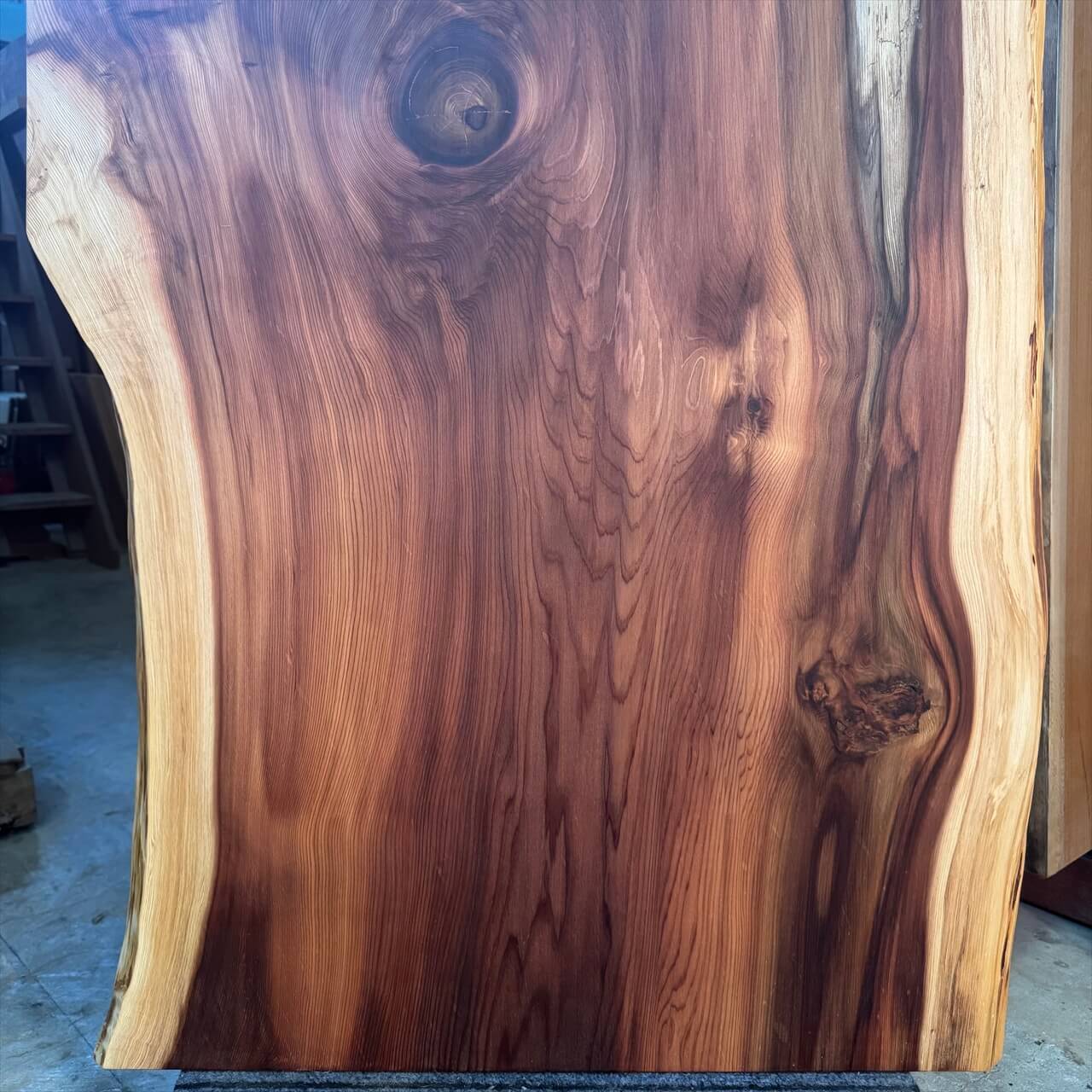 【大きく朽ちたところと赤身の濃淡が魅力の日光杉一枚板】