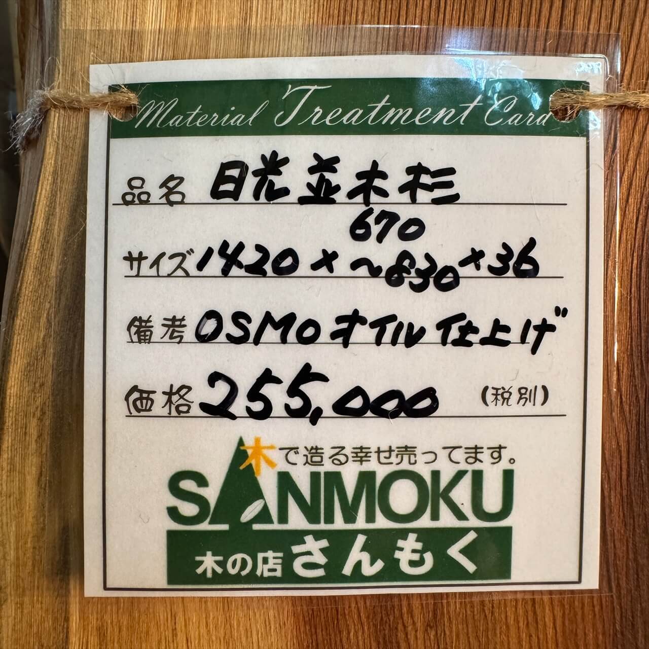 日光東照宮の並木として歴史を刻んできた日光杉から取れた一枚板です。
