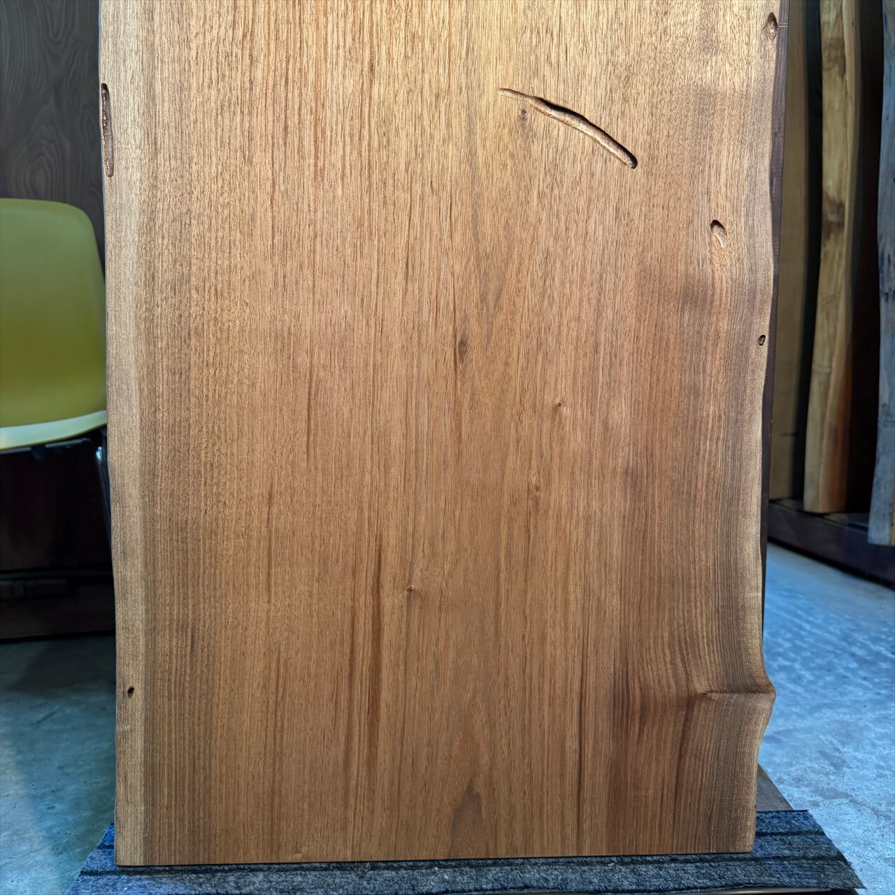 虫が食べた穴や跡も、この一枚板の個性として存在感を高めています。濃いめの赤みを帯びた色合いが、どこか落ち着いた雰囲気を演出してくれます。