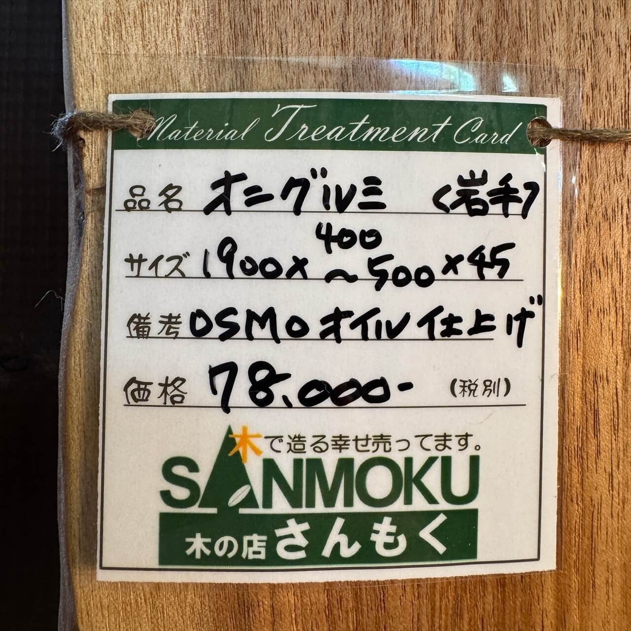 オニグルミ一枚板【岩手】1900×400~500×45㎜【オイル塗装 仕上げ済み】