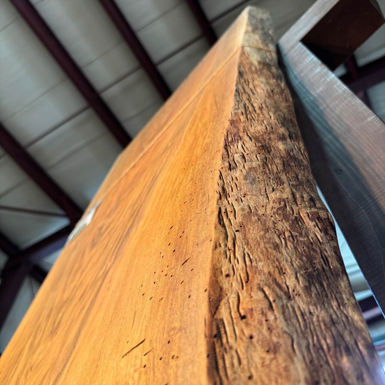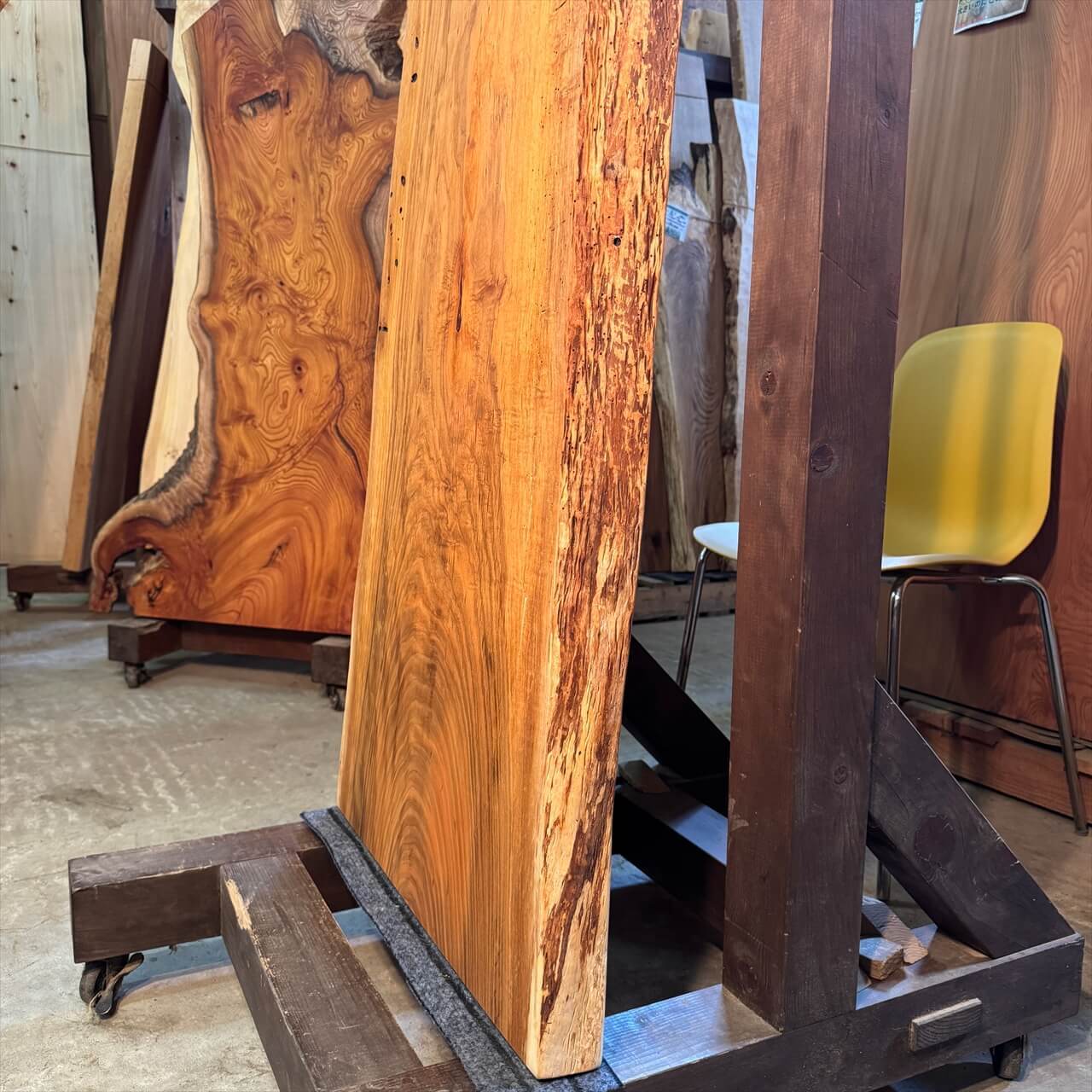 無数に空いた虫穴が、むしろこの板の個性と存在感を引き立てています。