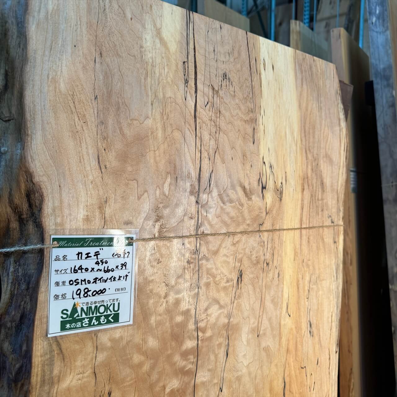 かえで一枚板【岩手】1640×450~660×39㎜【オイル塗装 仕上げ済み】