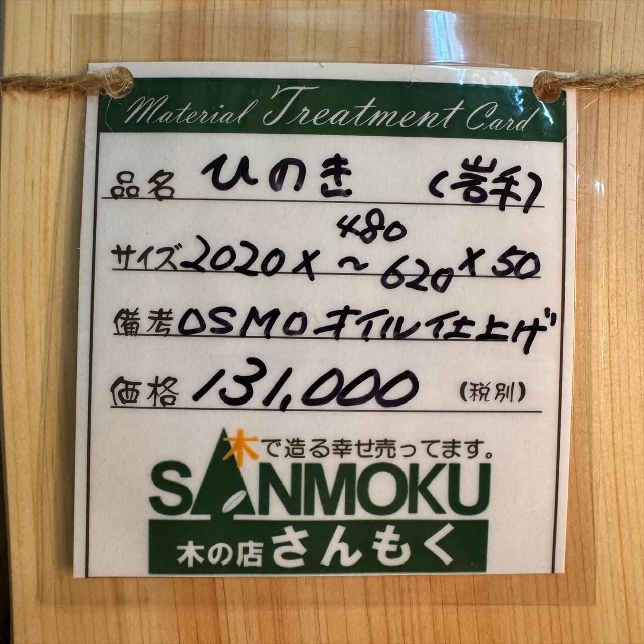 ひのき一枚板【岩手】2020×480~620×50㎜【オイル塗装 仕上げ済み】