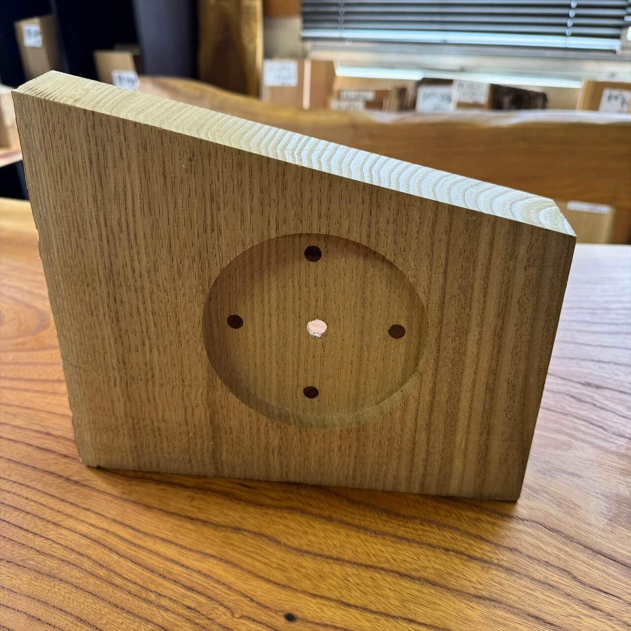 この時計は、製材や家具製作で切り落とされた小さな端材から生まれました。割れや虫穴など、木が歩んできた証をあえて残し、手を加えすぎず自然のままの風合いを大切にしています。
