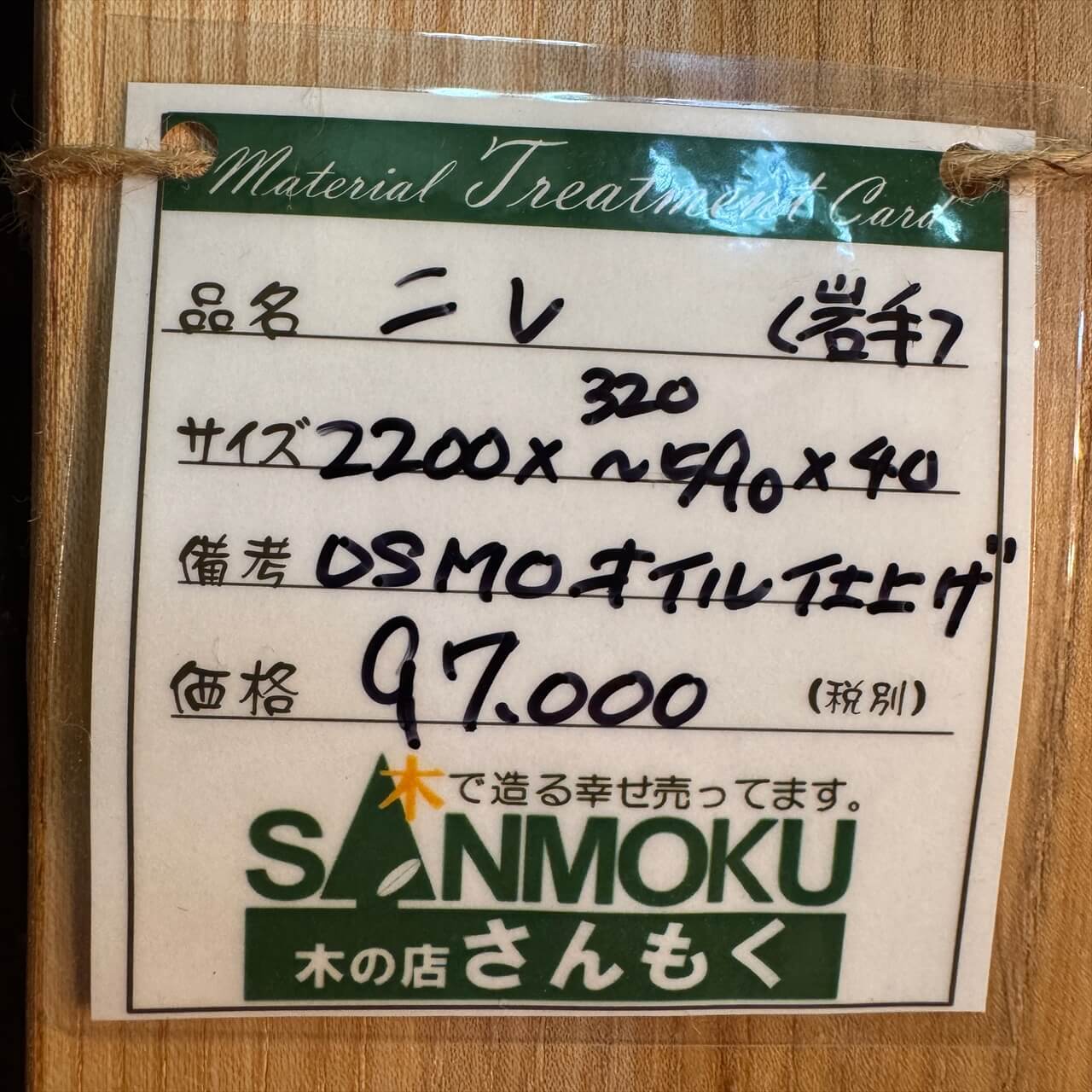 ニレ一枚板【岩手】2200×320~590×40㎜【オイル塗装 仕上げ済み】