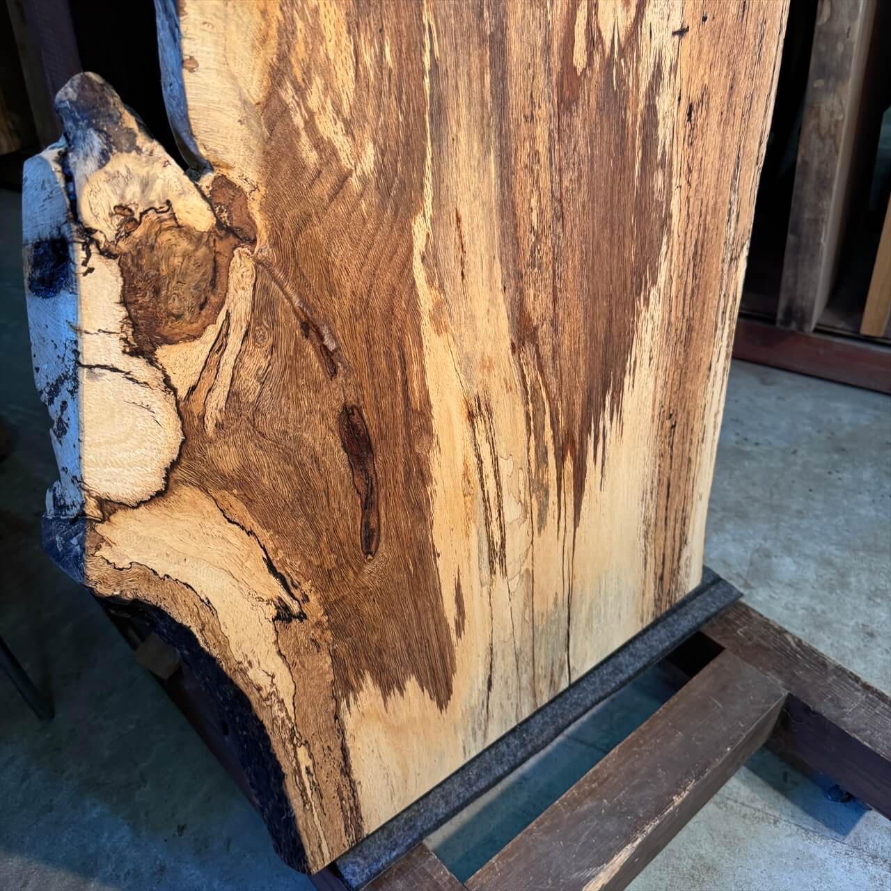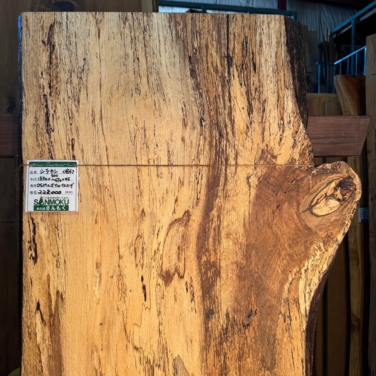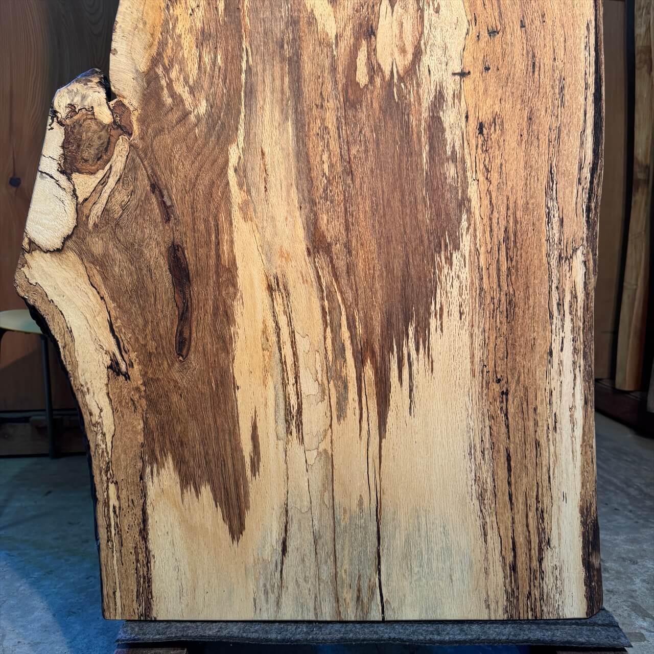 【熟成の美!岩手県産シラカシ一枚板|スポルテッド×ブルステインが描く自然のアート】