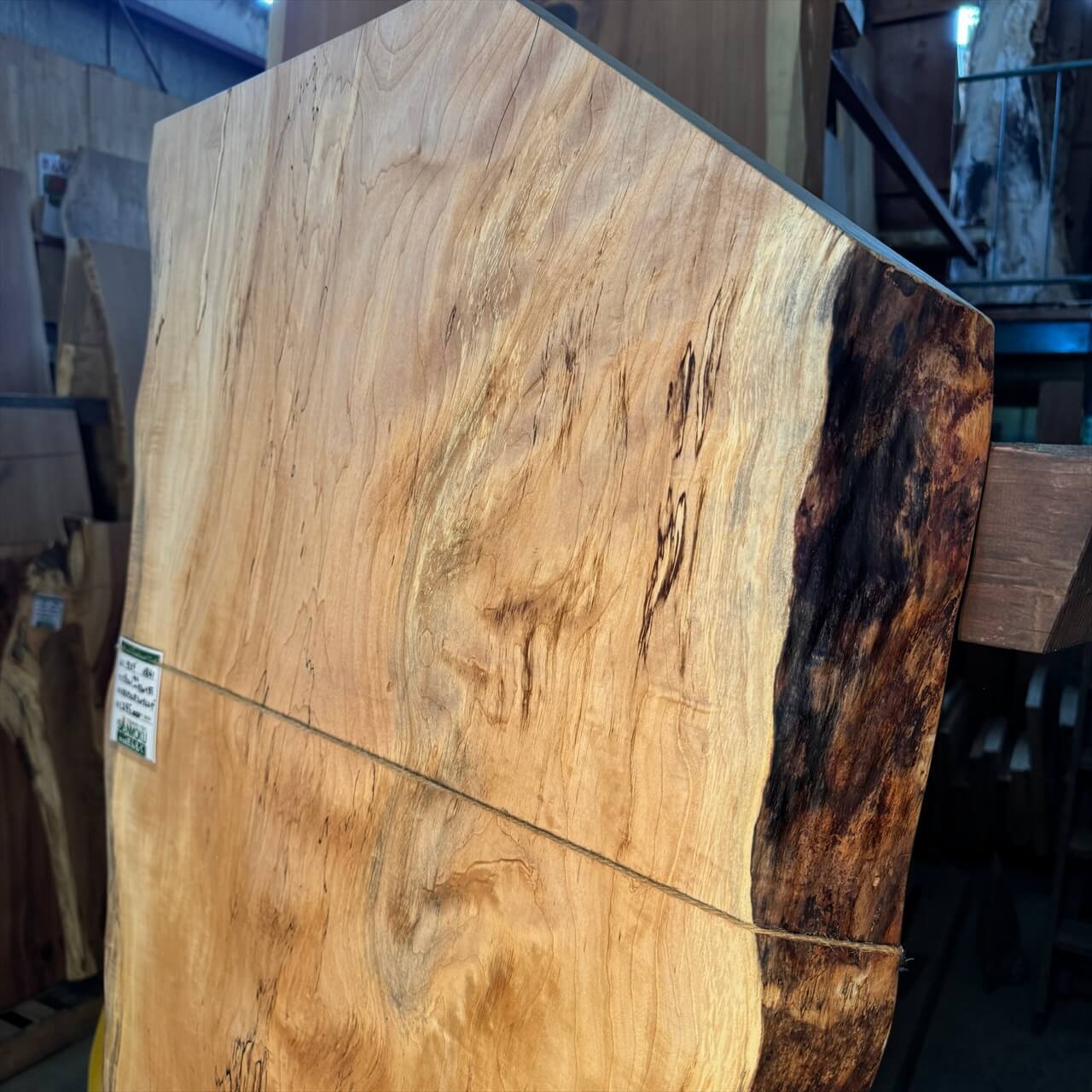 【スポルテッド&ブルーステインと黒耳がワイルド!角度で表情が変わる岩手県産カエデ一枚板】