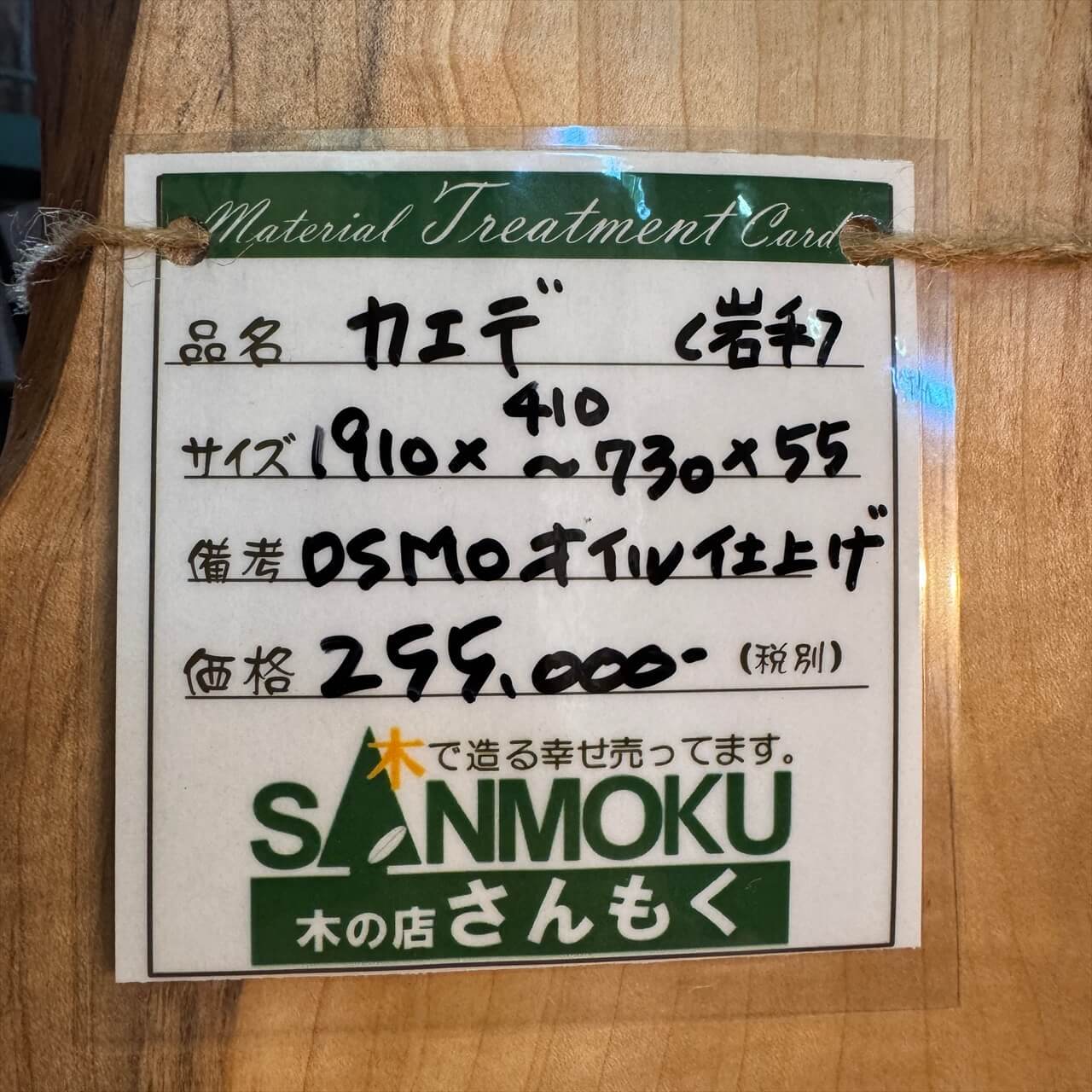 かえで一枚板【岩手】1910×410~730×55㎜【オイル塗装 仕上げ済み】