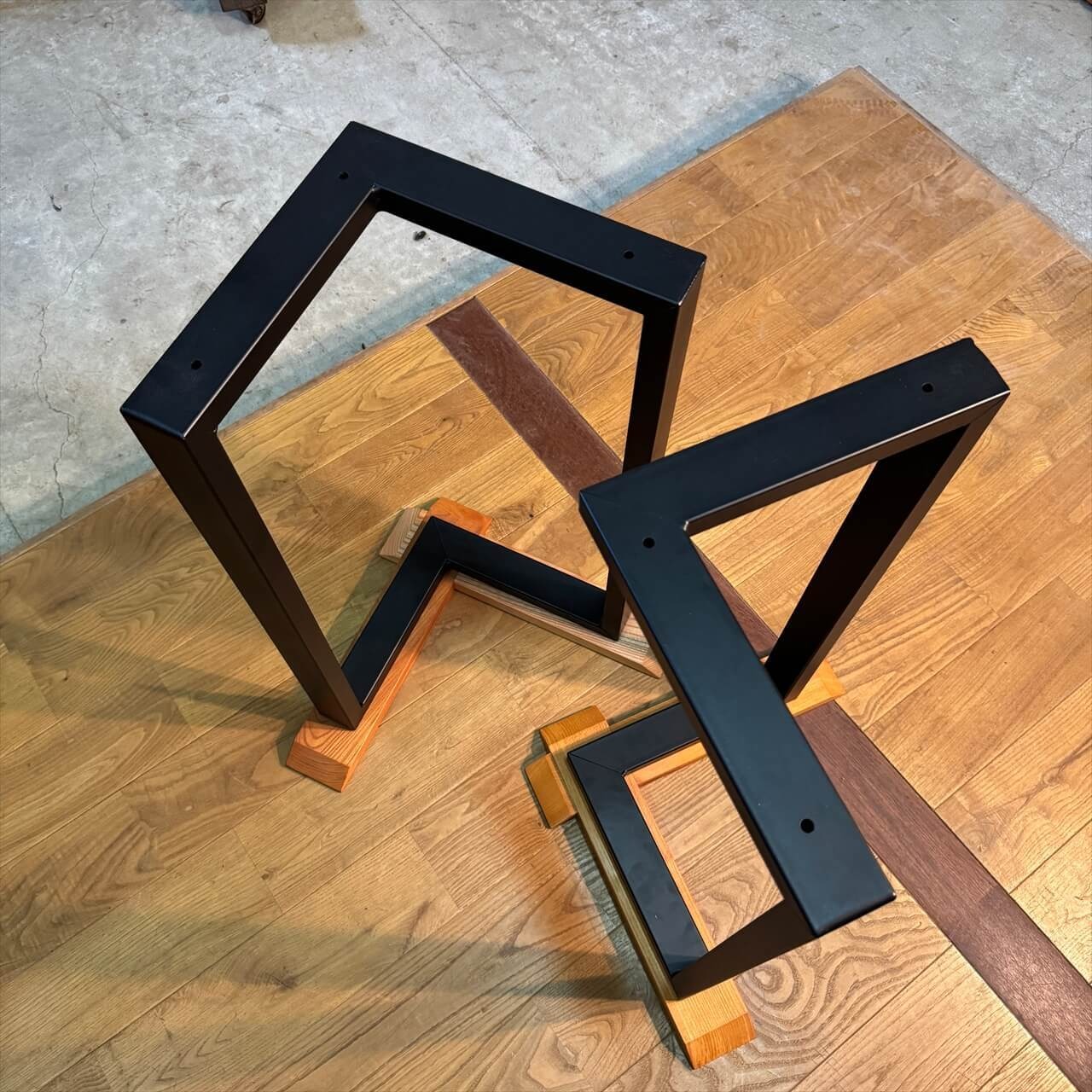 巾の狭い一枚板にぴったりのアイアン脚が登場しました。