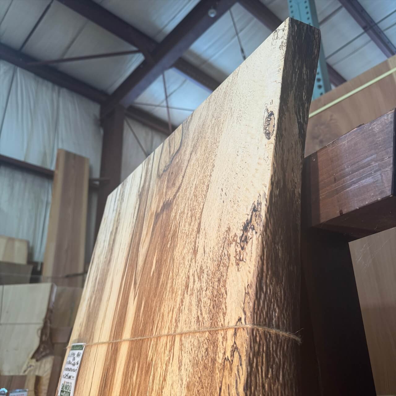 【焦げたような耳とブルーステインが生むアートな白樫一枚板】