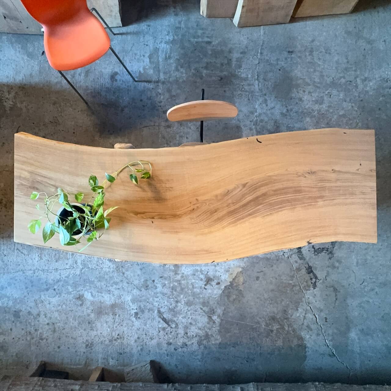 原木の中心に位置する一枚板なので、表なのか裏なのか迷うほど、両面が魅力的な一枚板です。