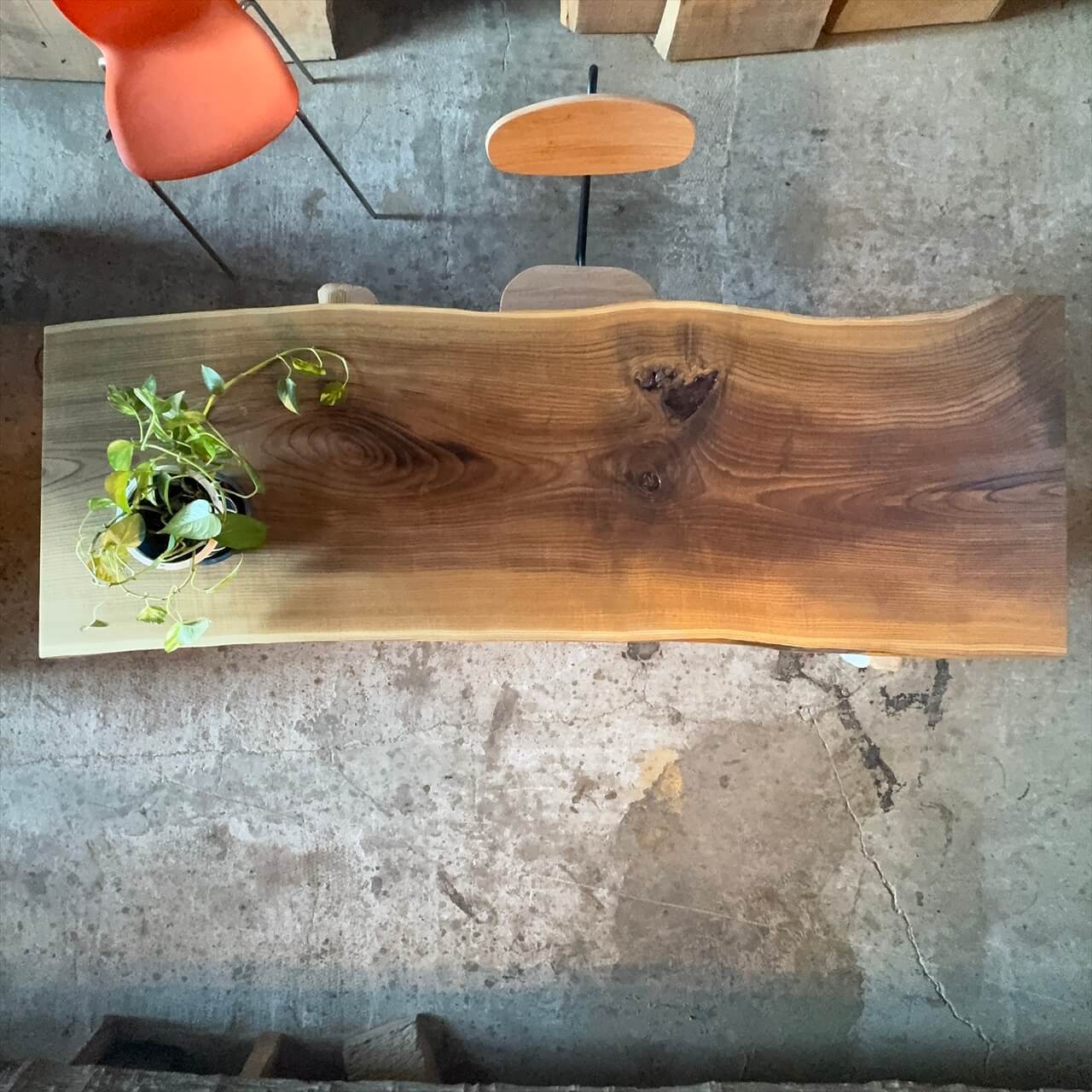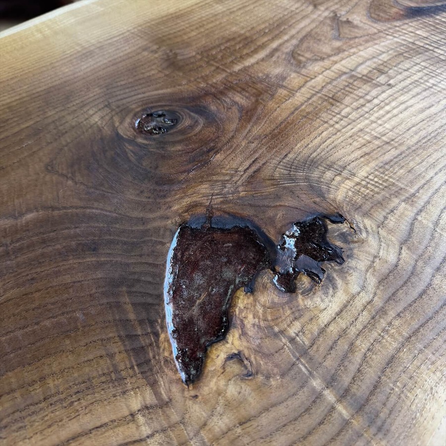 朽ちた部分もこの板の個性として生きており、さらに経年を重ねた色味と味わいが今後楽しみな一枚板です。