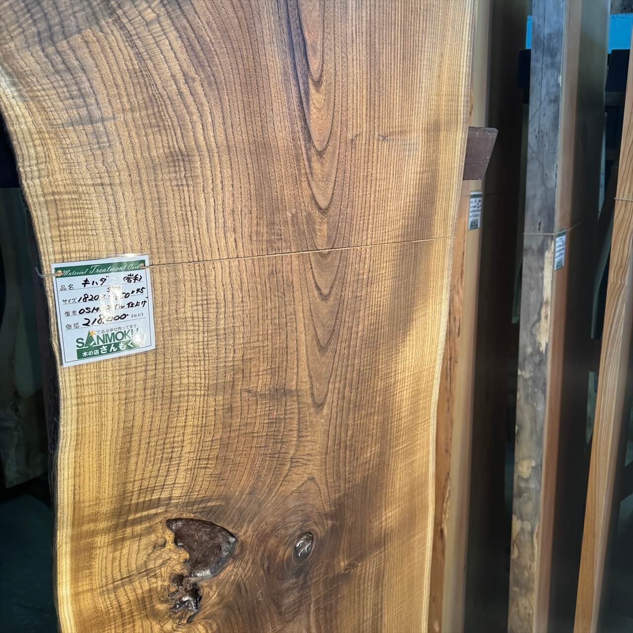 この一枚板は、キハダの中でも特に色味が深く、渋い濃さが魅力です。