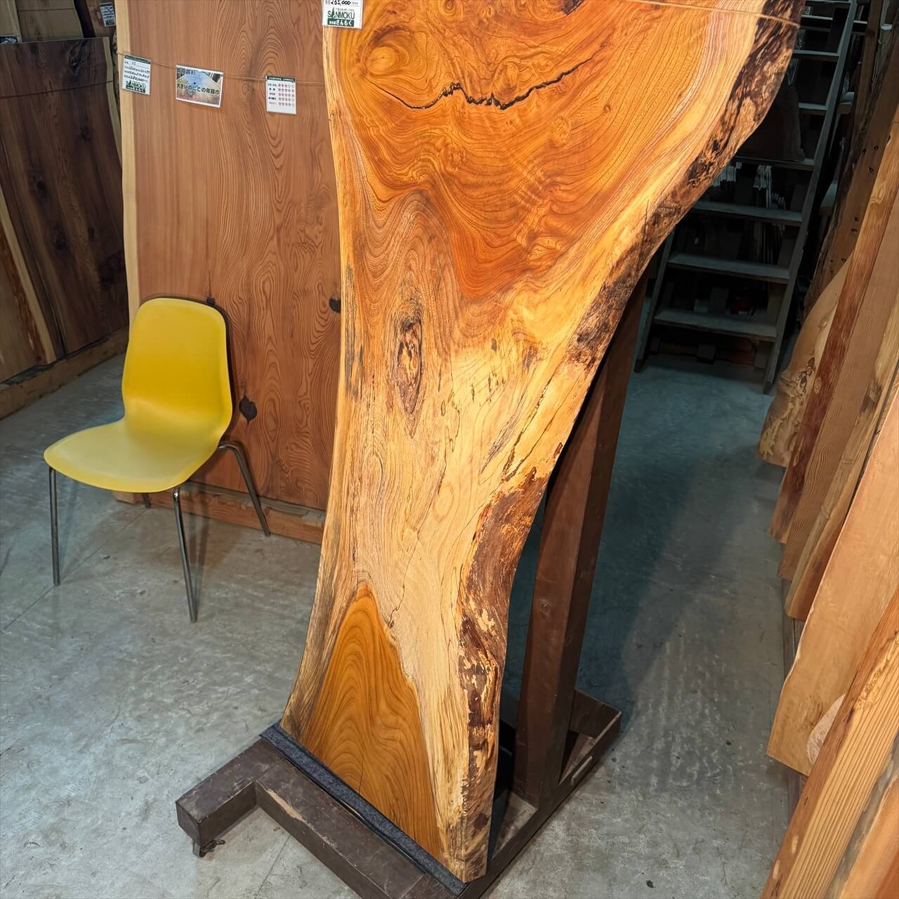 凸凹した原木から製材された、独特なカタチのケヤキ一枚板です。