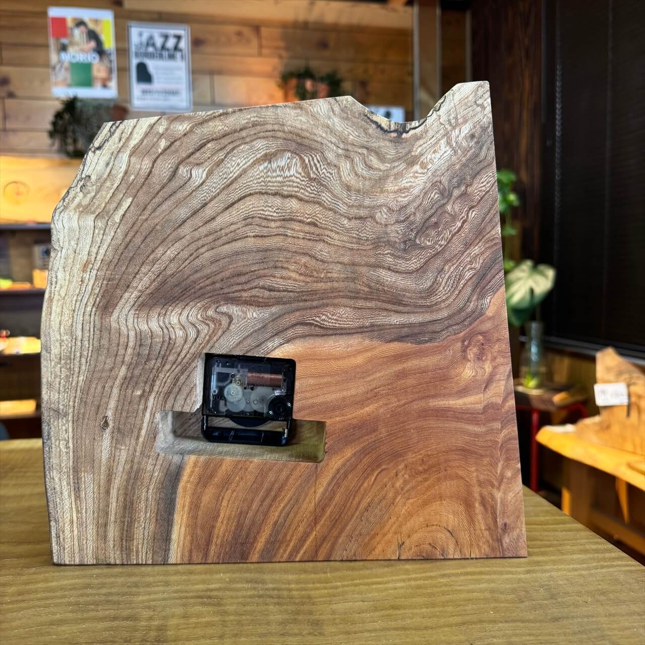 この時計は、製材や家具製作で切り落とされた小さな端材から生まれました。割れや虫穴など、木が歩んできた証をあえて残し、手を加えすぎず自然のままの風合いを大切にしています。デジタル全盛の時代に、アナログ時計が刻むわずかな“ずれ”もまた、暮らしの中の豊かな時間として楽しんでいただけます。