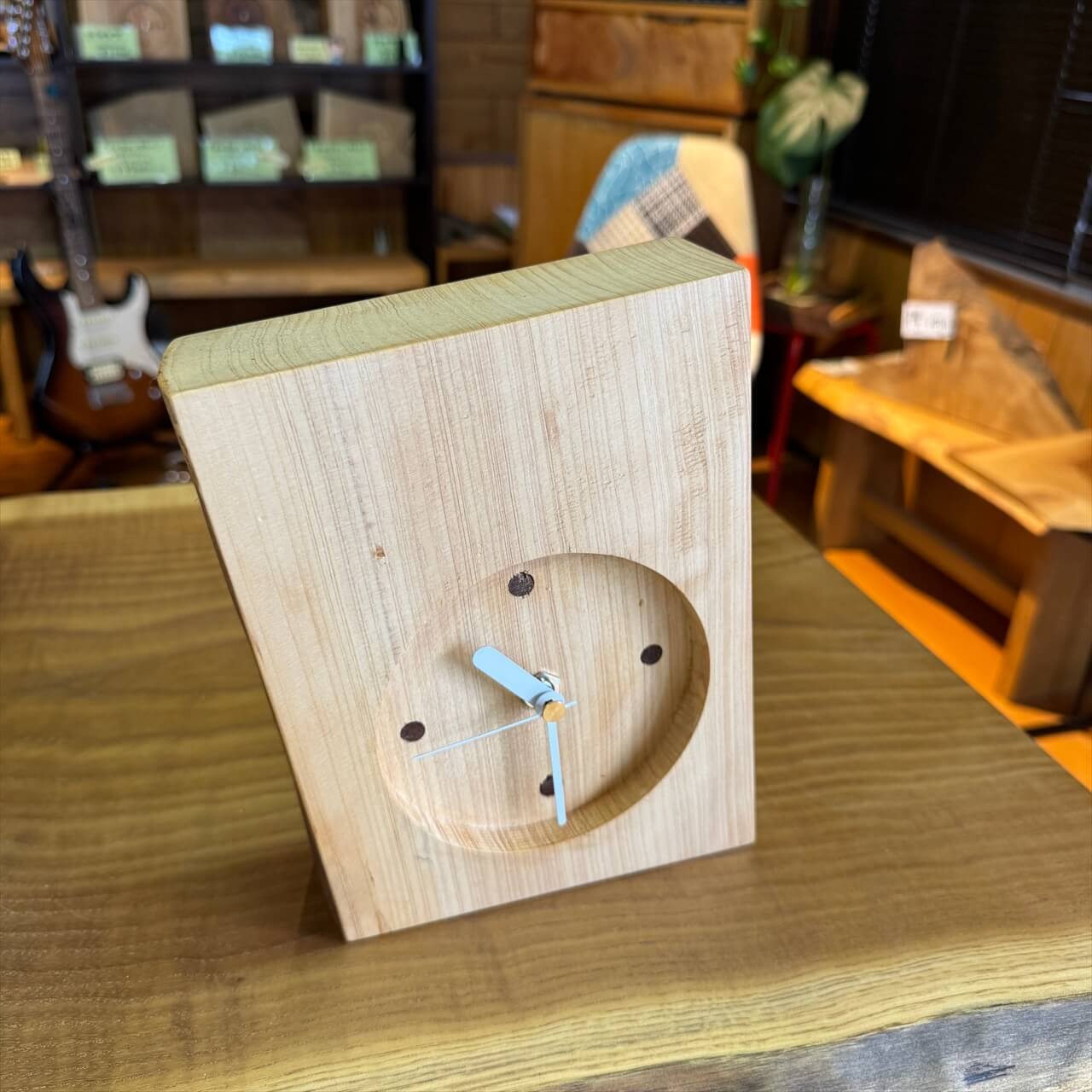 端材から木の時計を作っています。天然木のぬくもりが時を刻む — 木の時計