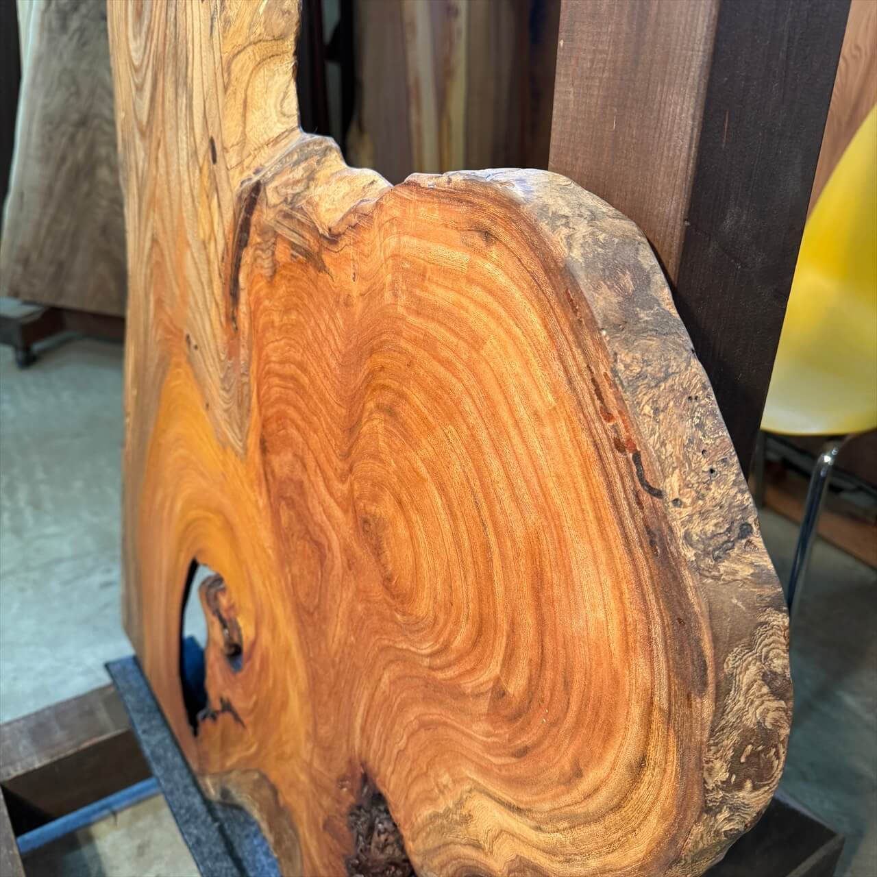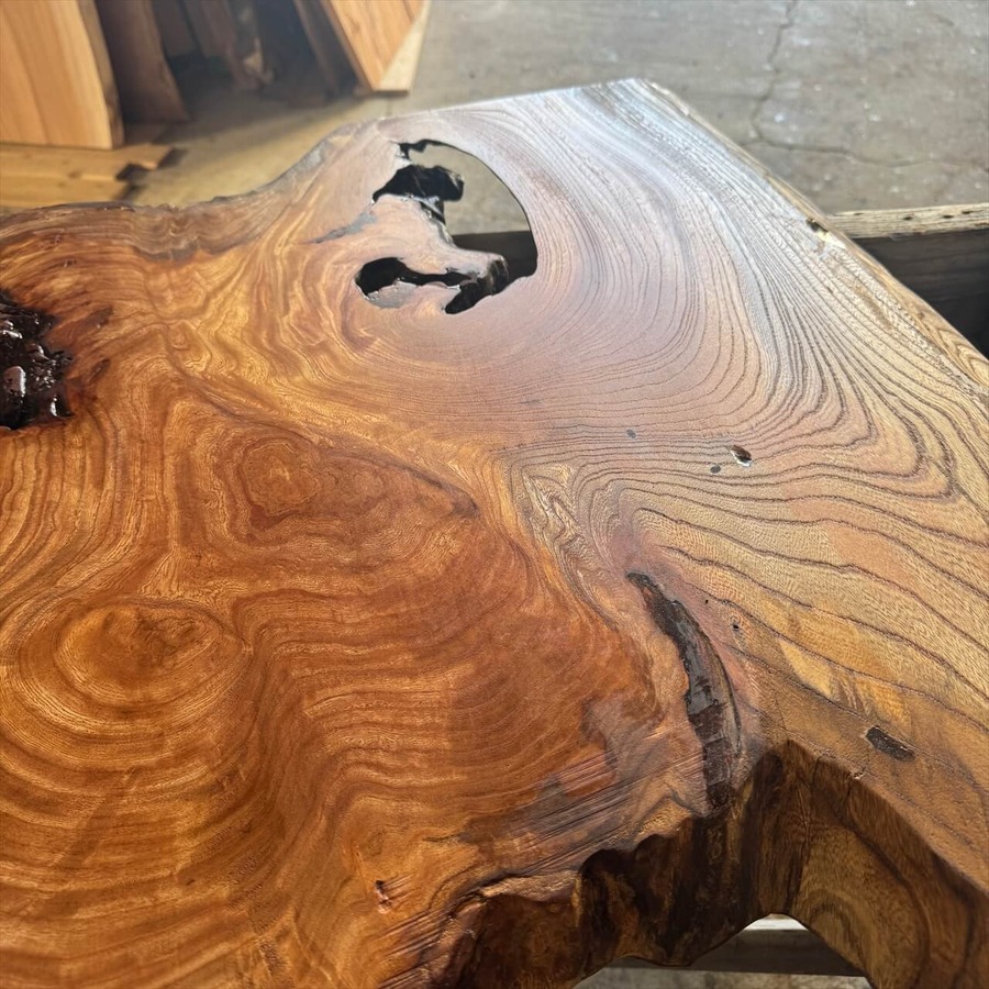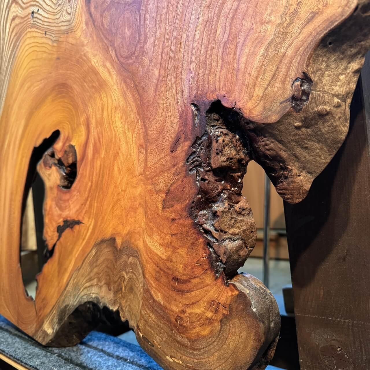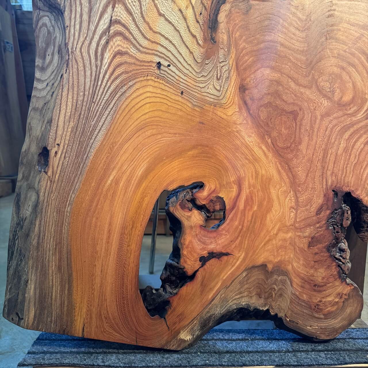 大きな瘤が付いた岩手県産ケヤキ原木から製材した一枚板になります。