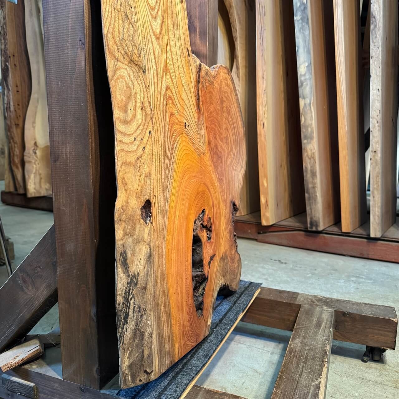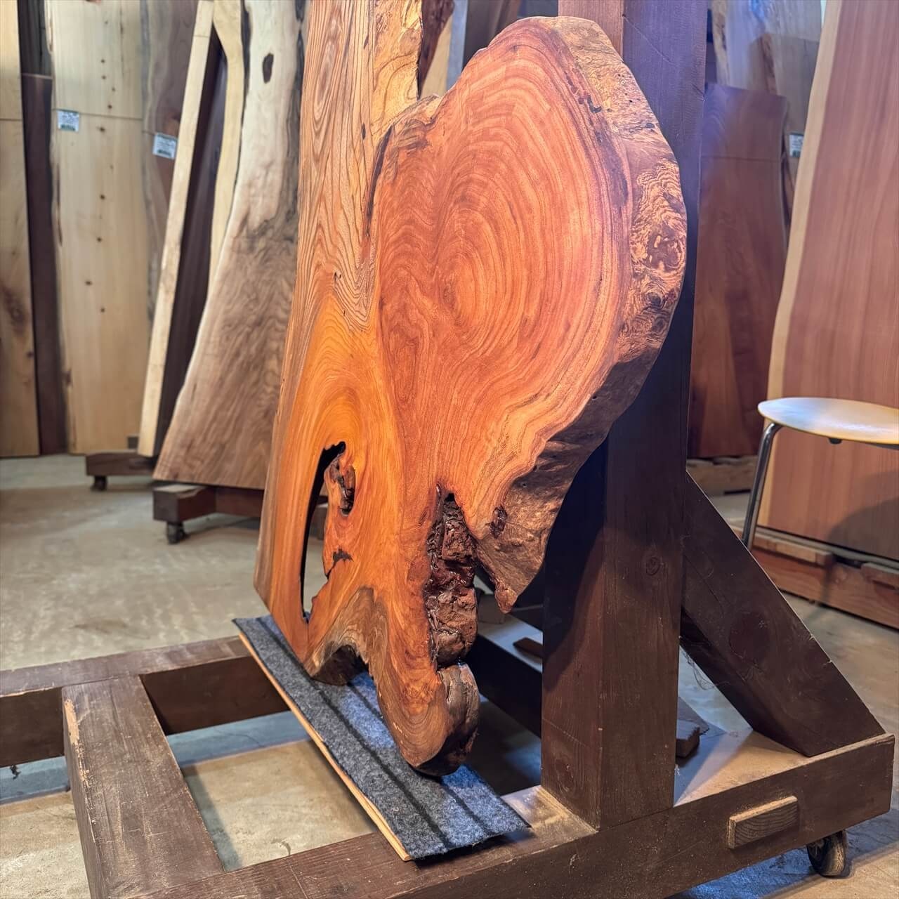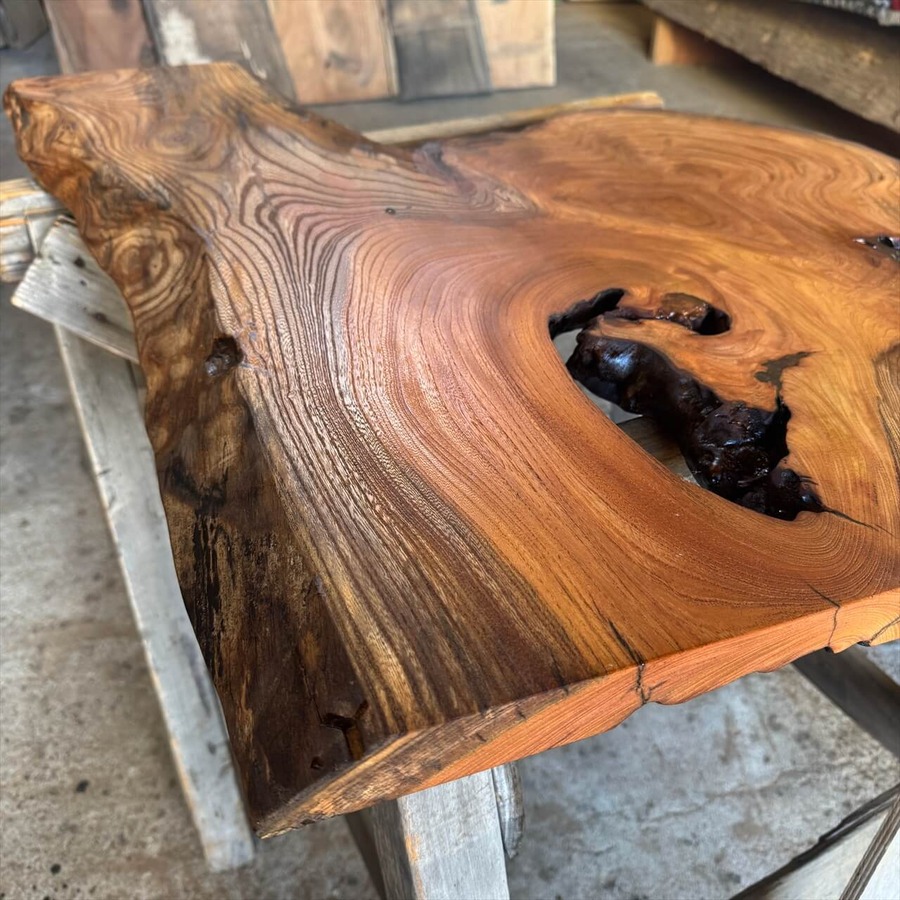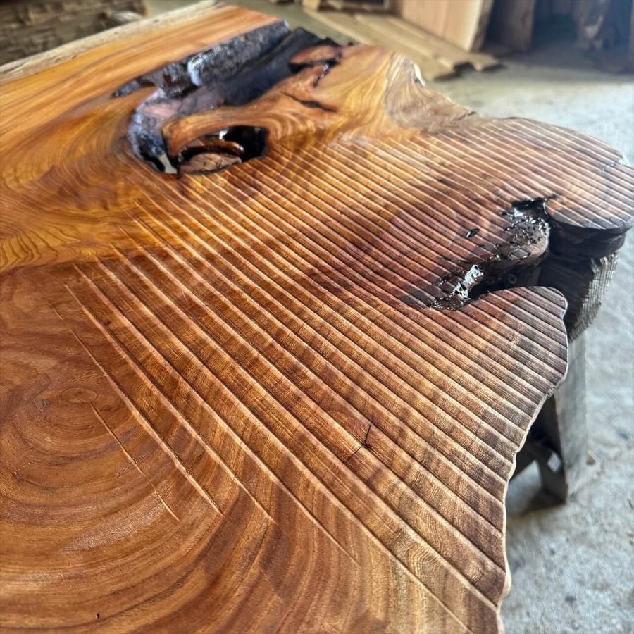 大きな瘤が付いた岩手県産ケヤキ原木から製材した一枚板になります。