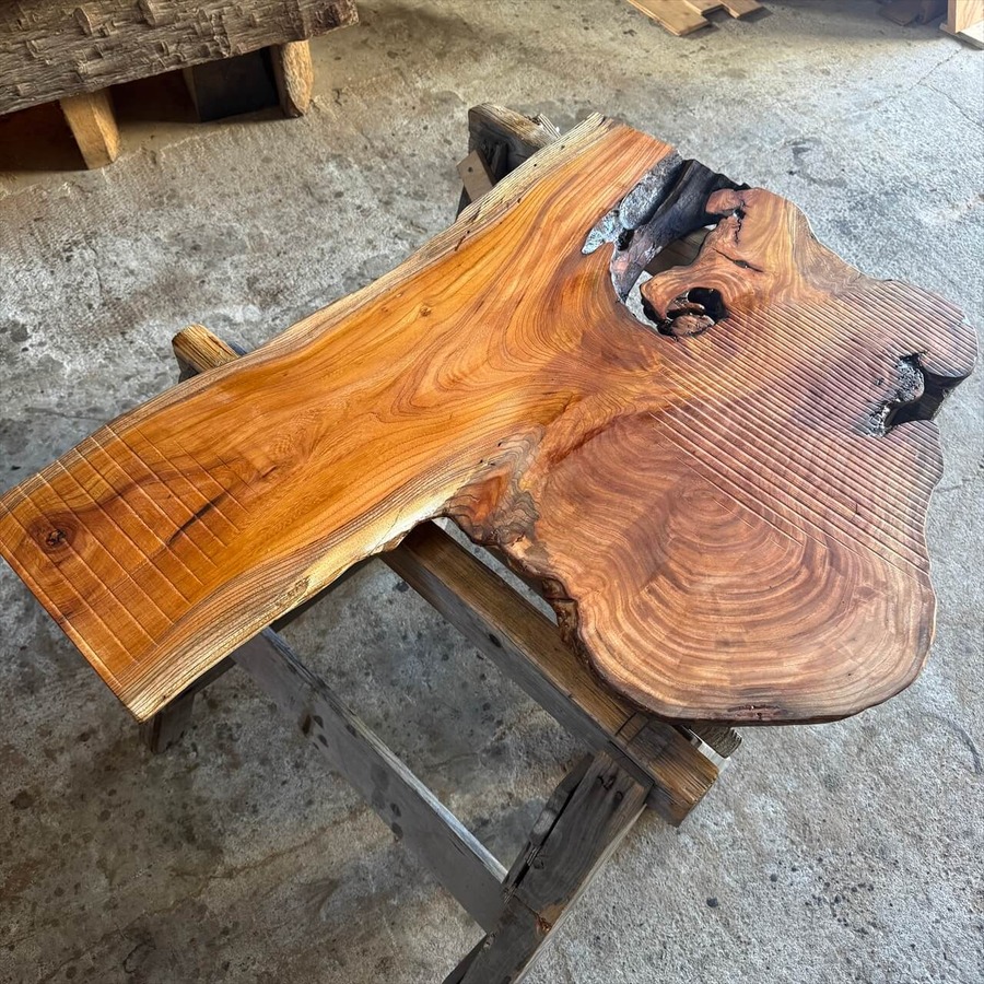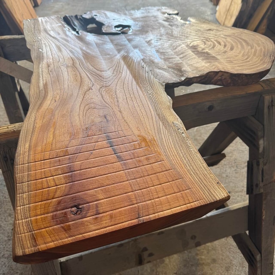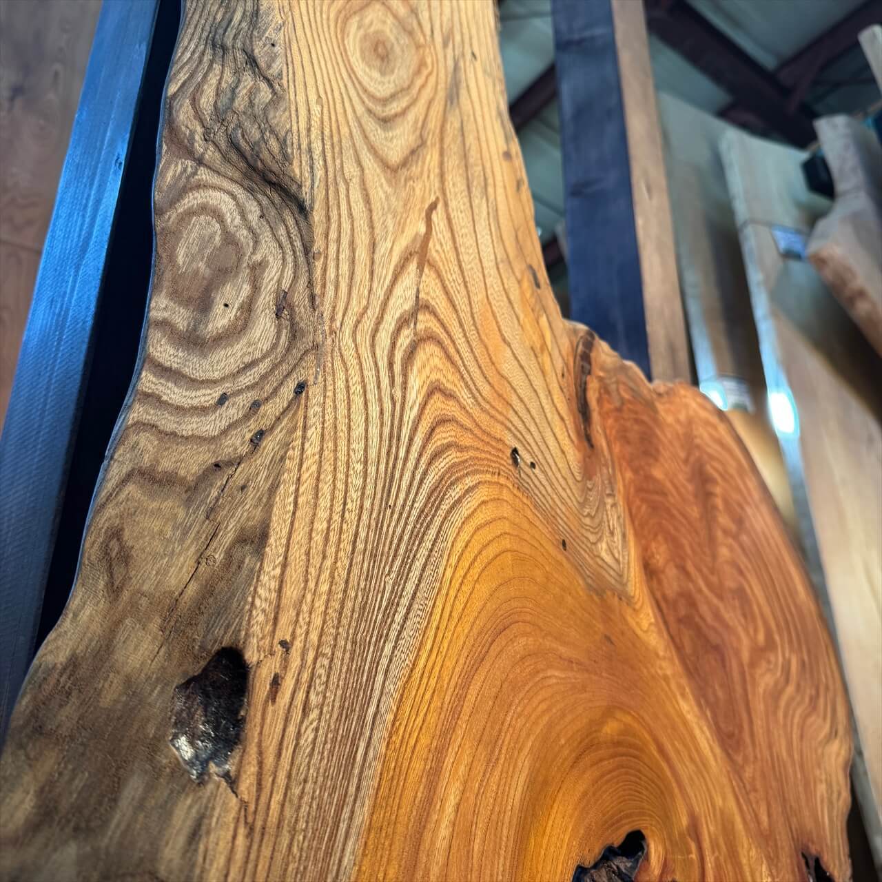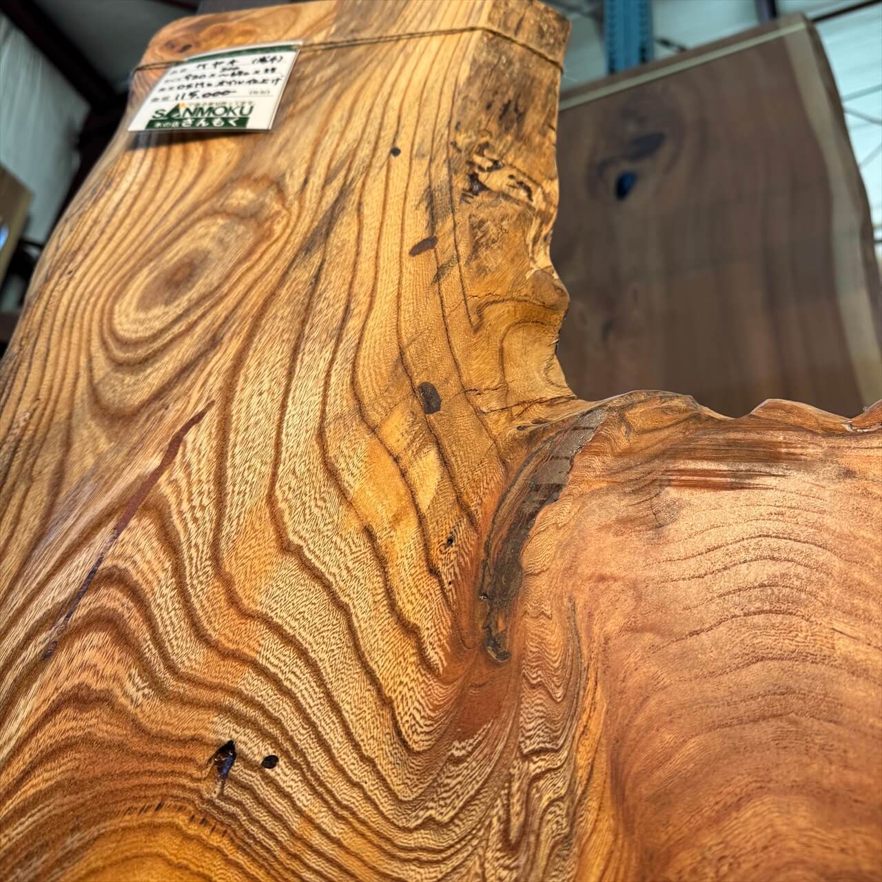 大きな瘤が付いた岩手県産ケヤキ原木から製材した一枚板になります。