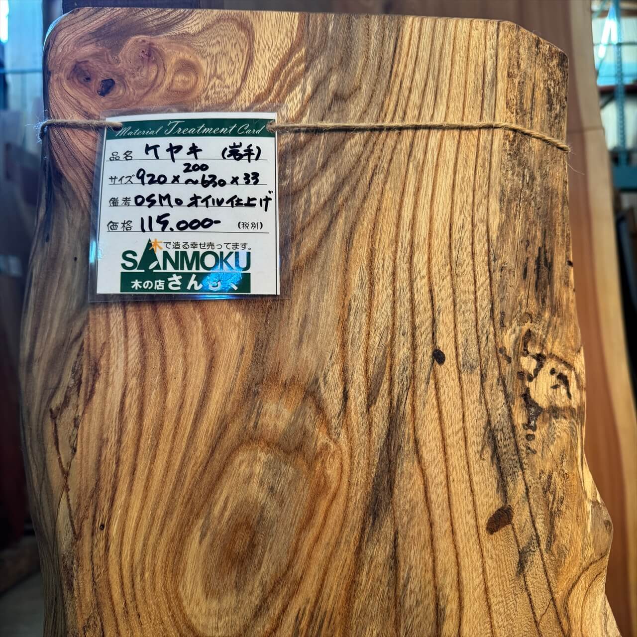 けやき一枚板【岩手】920×200~630×33㎜【オイル塗装 仕上げ済み】