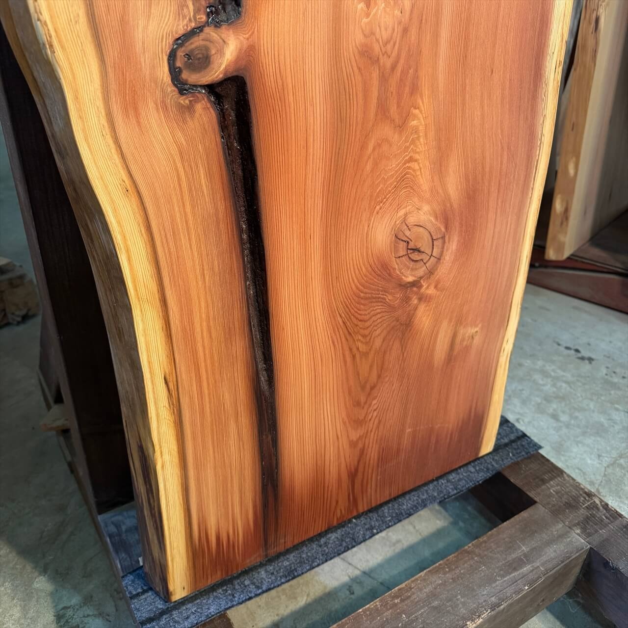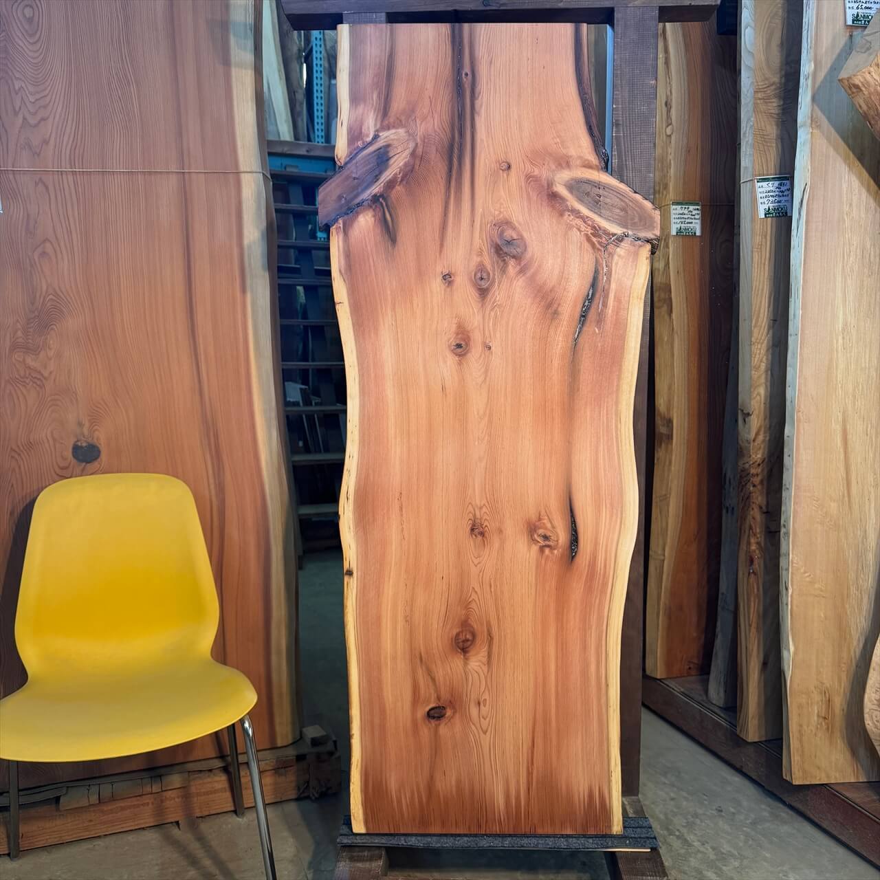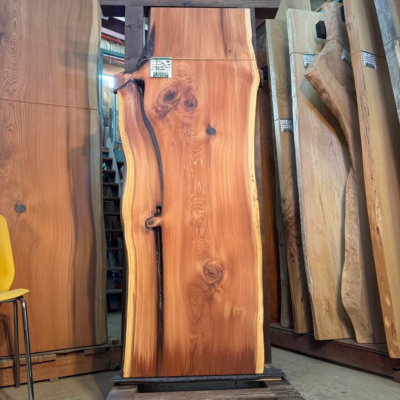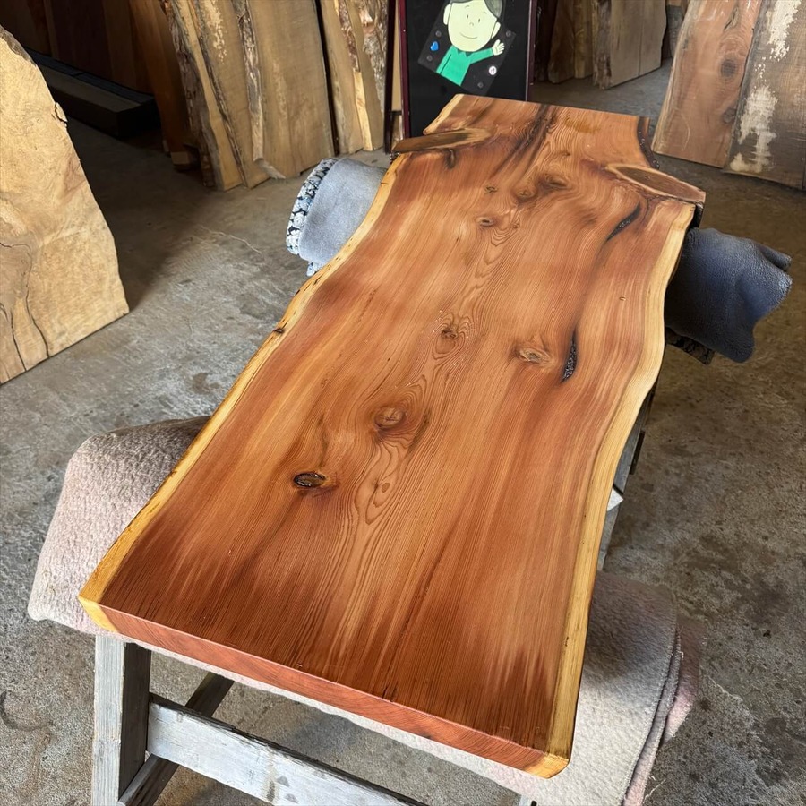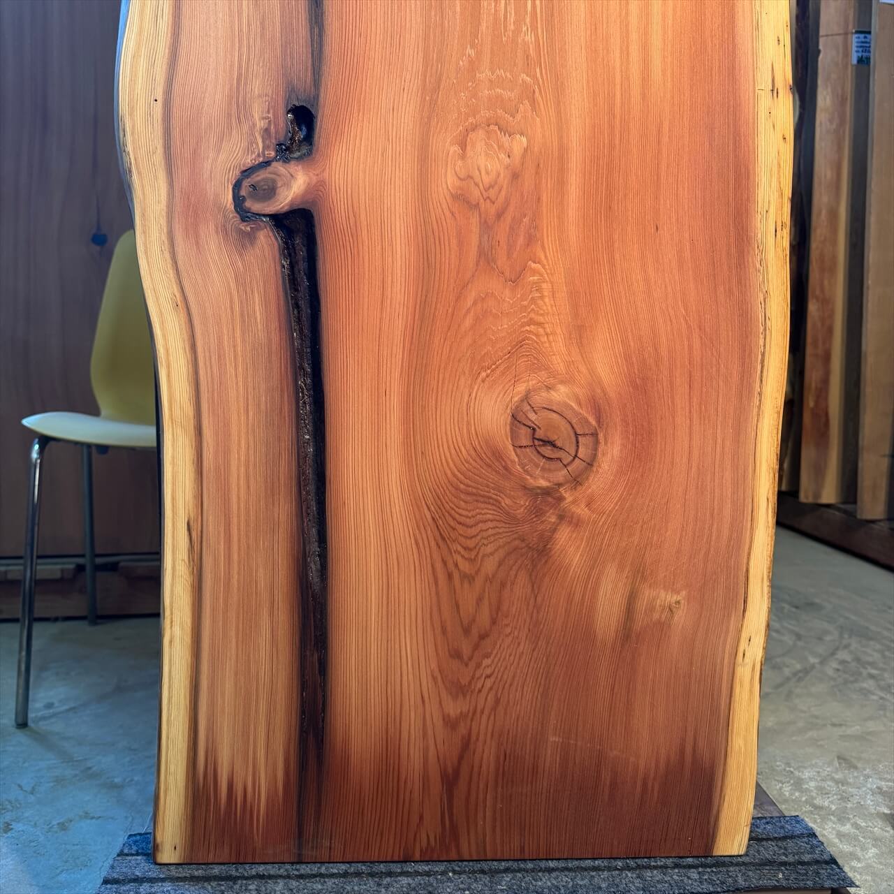 岩手県産のネズコ原木から製材した、高樹齢のネズコ一枚板です。国産レッドシダーとも呼ばれるネズコは、年輪が非常に細かく、長い年月を生き抜いた木ならではの密度と表情を持っています。