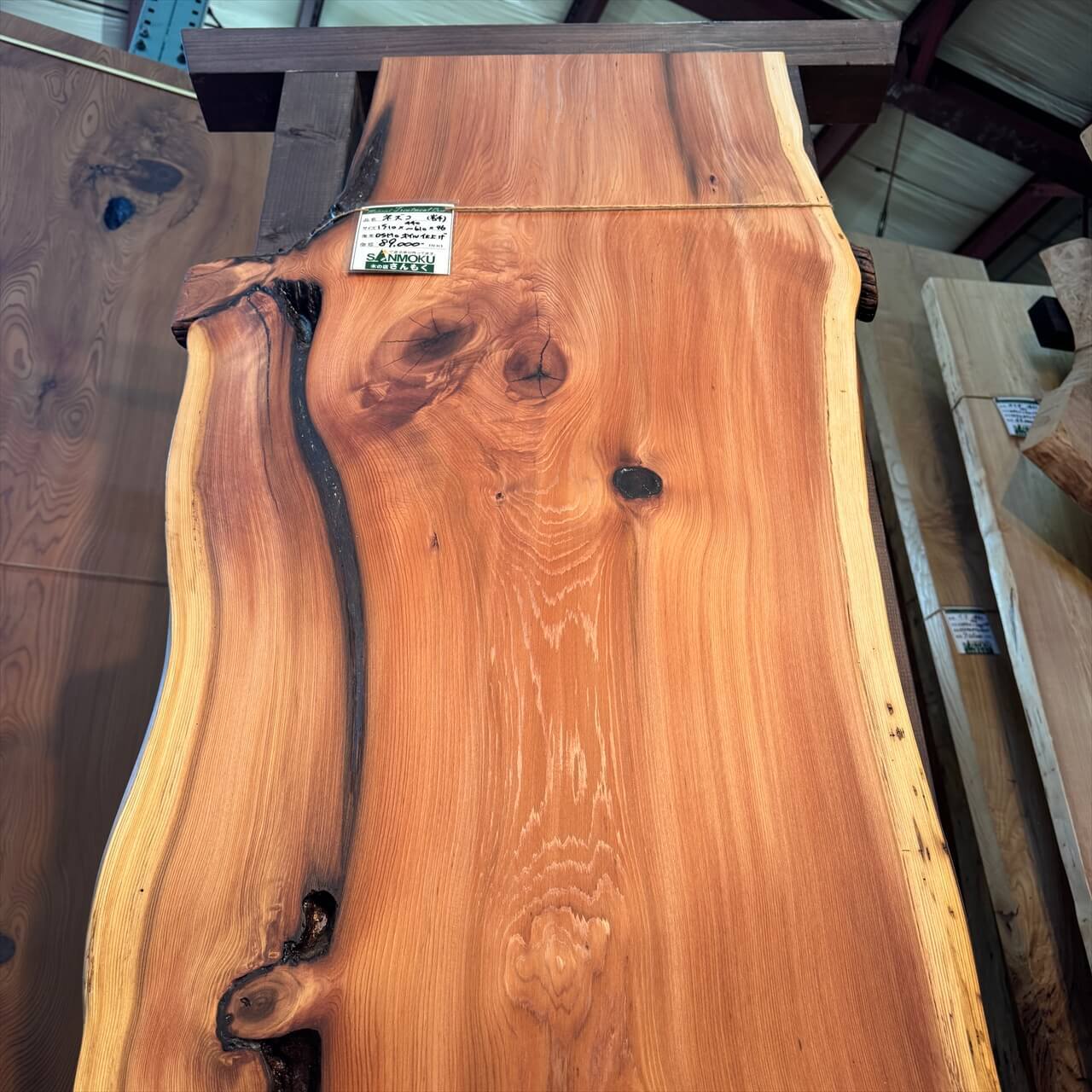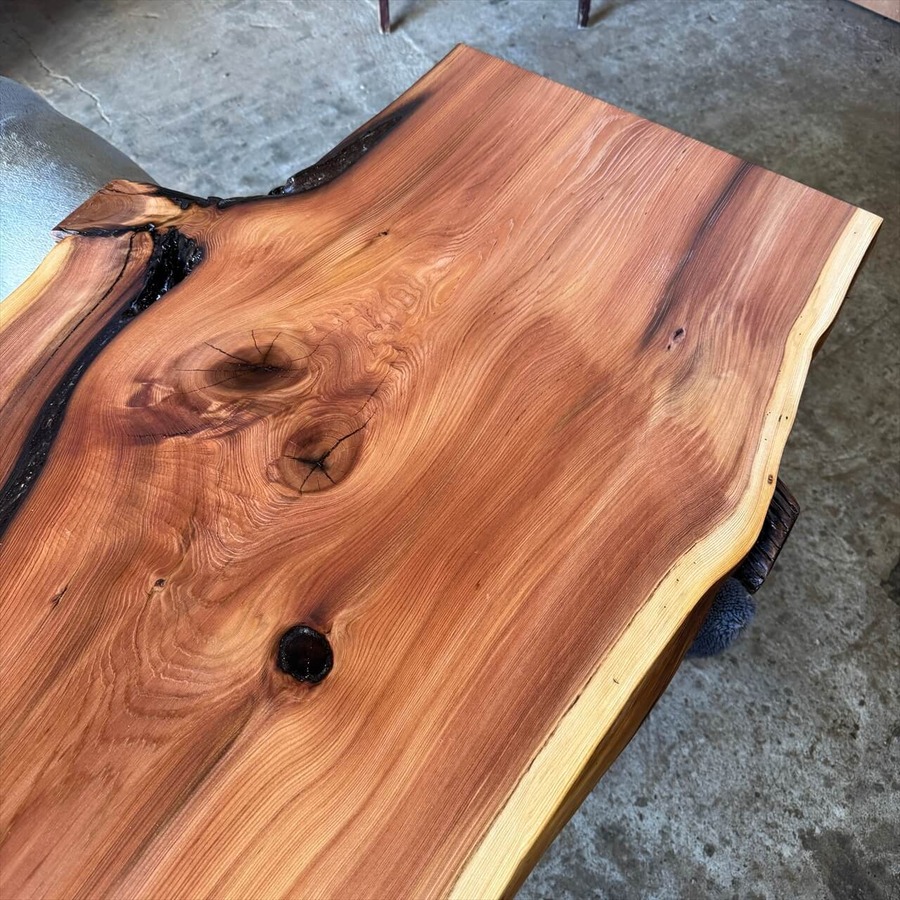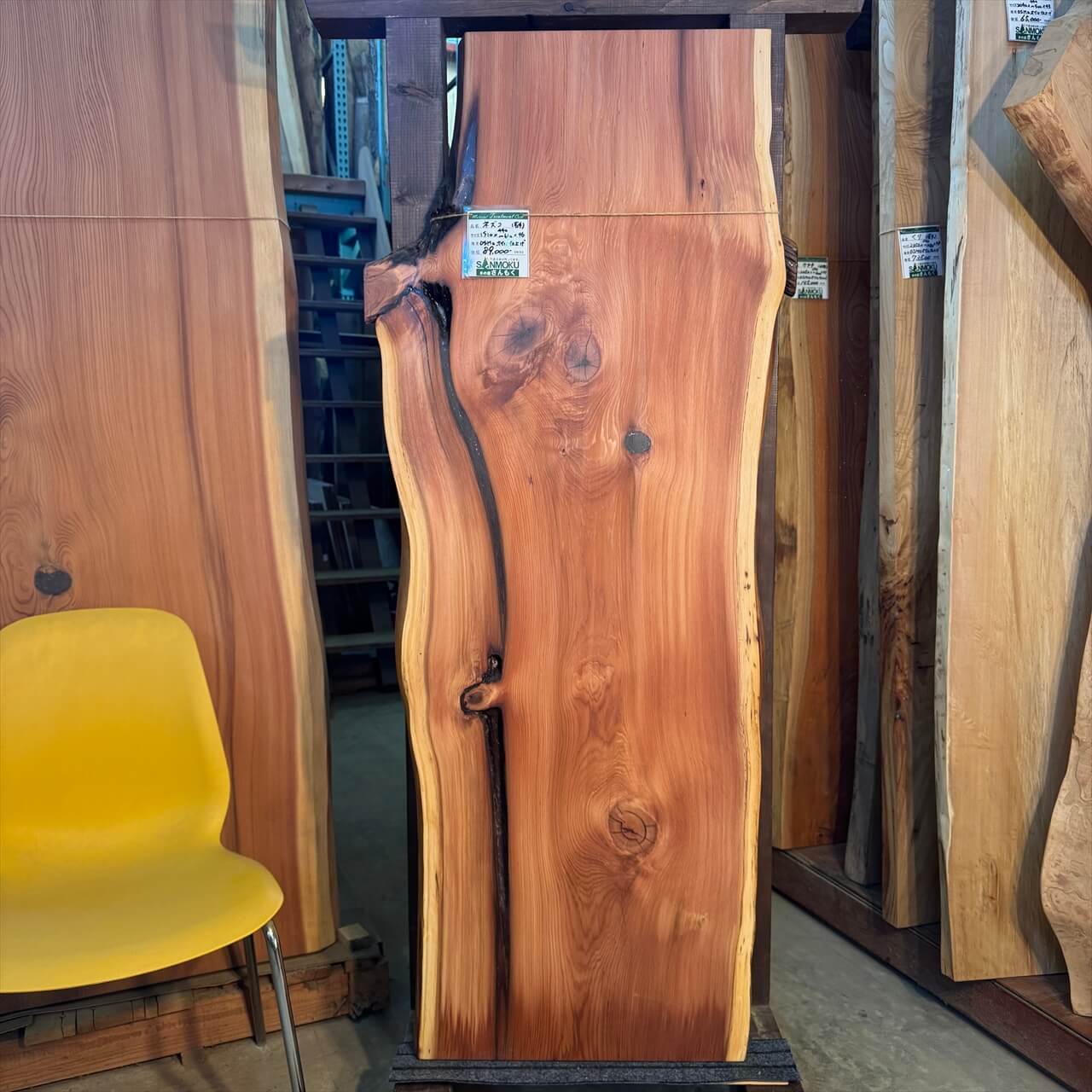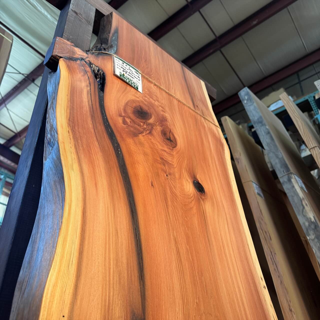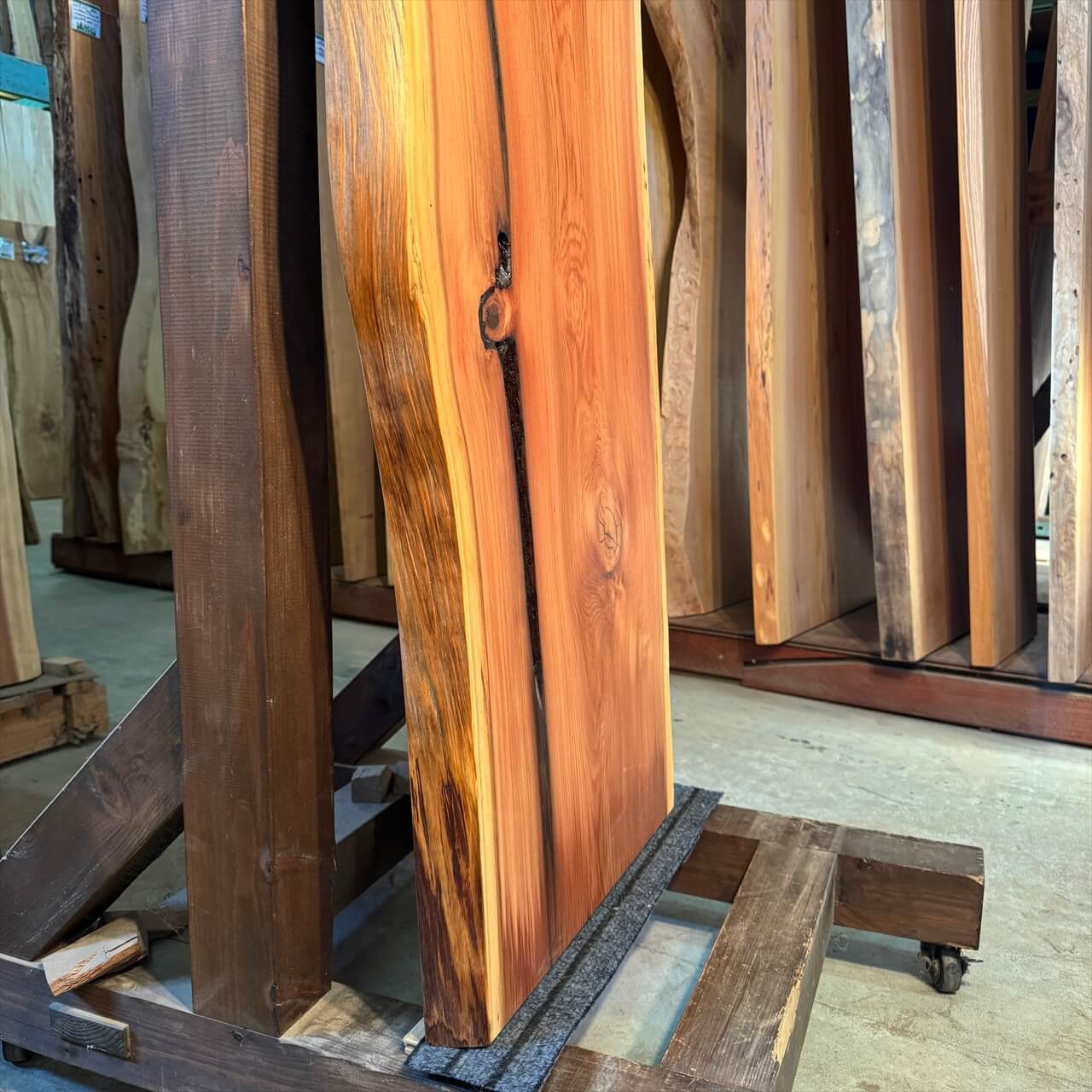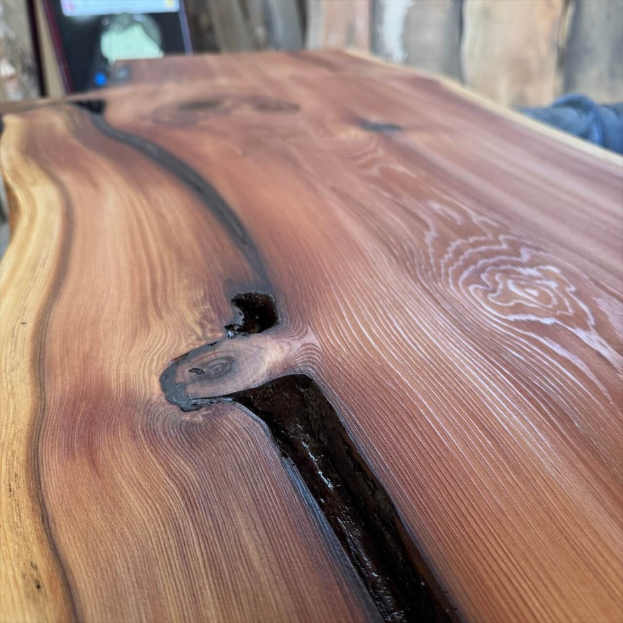 岩手県産のネズコ原木から製材した、高樹齢のネズコ一枚板です。国産レッドシダーとも呼ばれるネズコは、年輪が非常に細かく、長い年月を生き抜いた木ならではの密度と表情を持っています。
