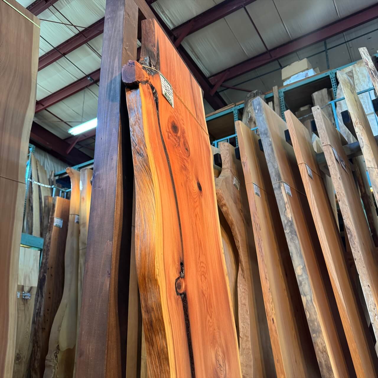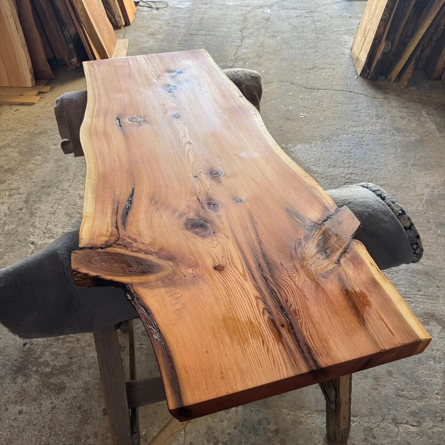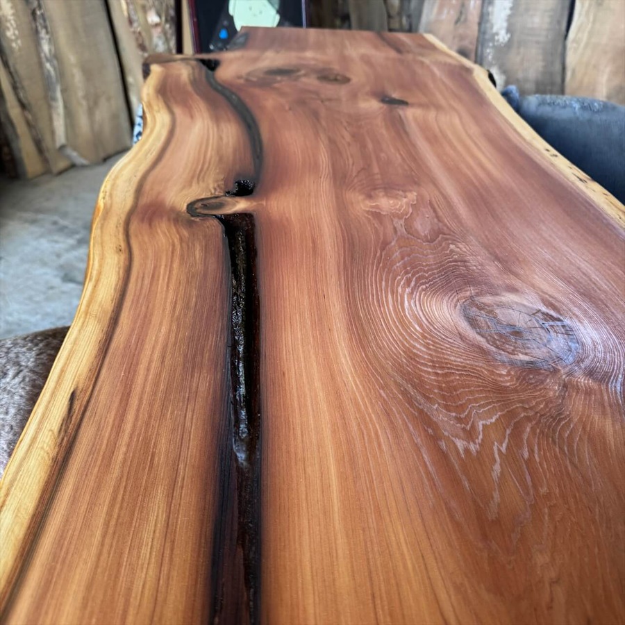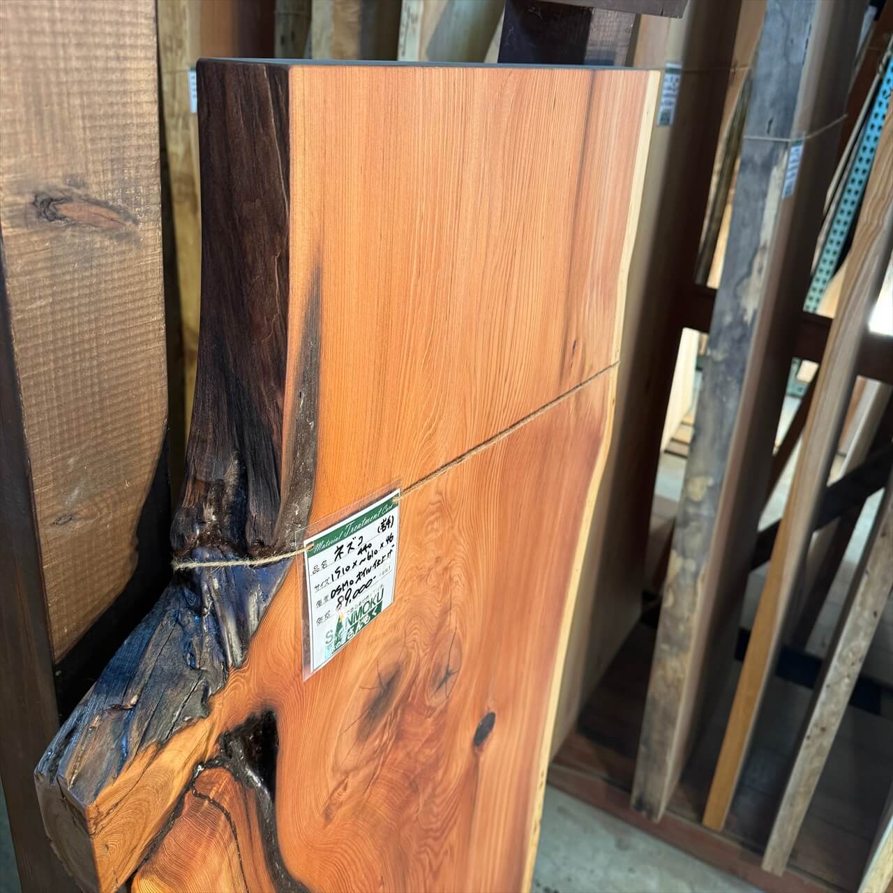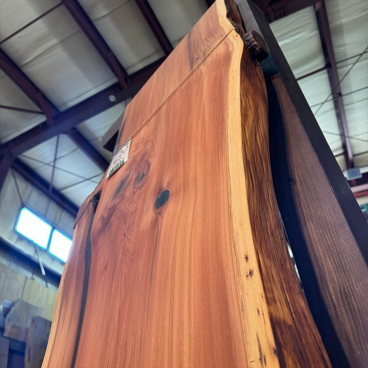 岩手県産のネズコ原木から製材した、高樹齢のネズコ一枚板です。国産レッドシダーとも呼ばれるネズコは、年輪が非常に細かく、長い年月を生き抜いた木ならではの密度と表情を持っています。
