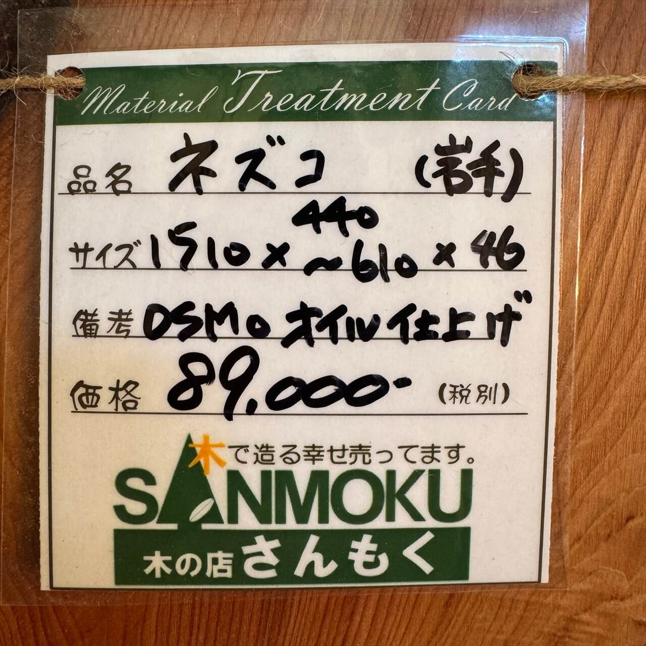 ネズコ一枚板【岩手】1510×440~610×46㎜【オイル塗装 仕上げ済み】