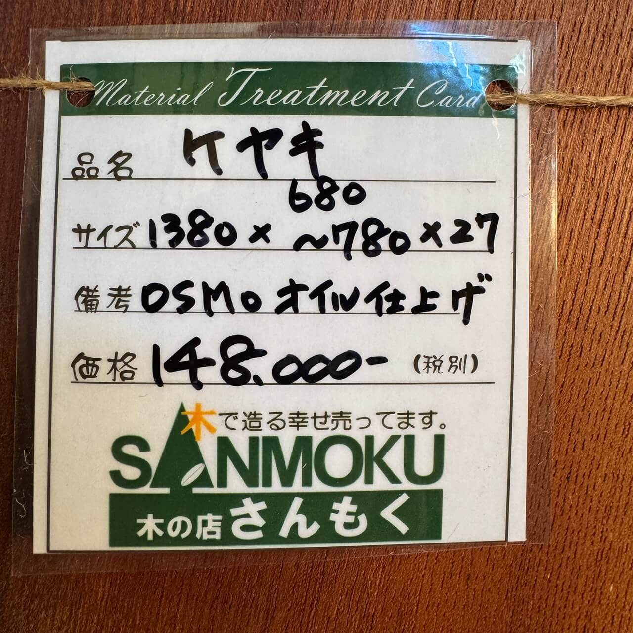 けやき一枚板 1380×680~780×27㎜【オイル塗装 仕上げ済み】