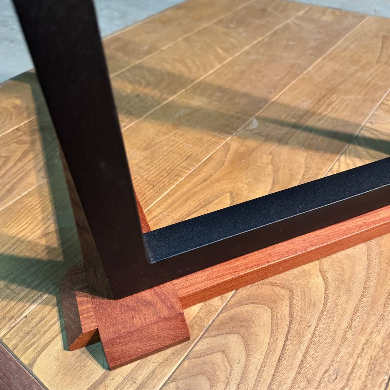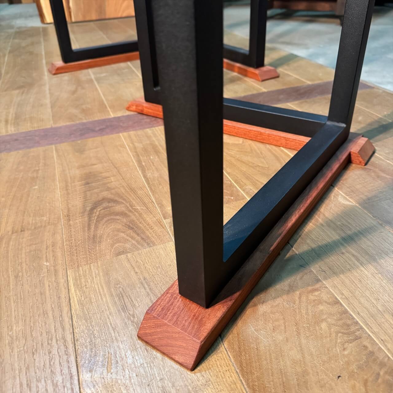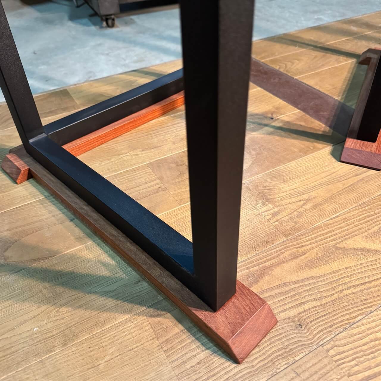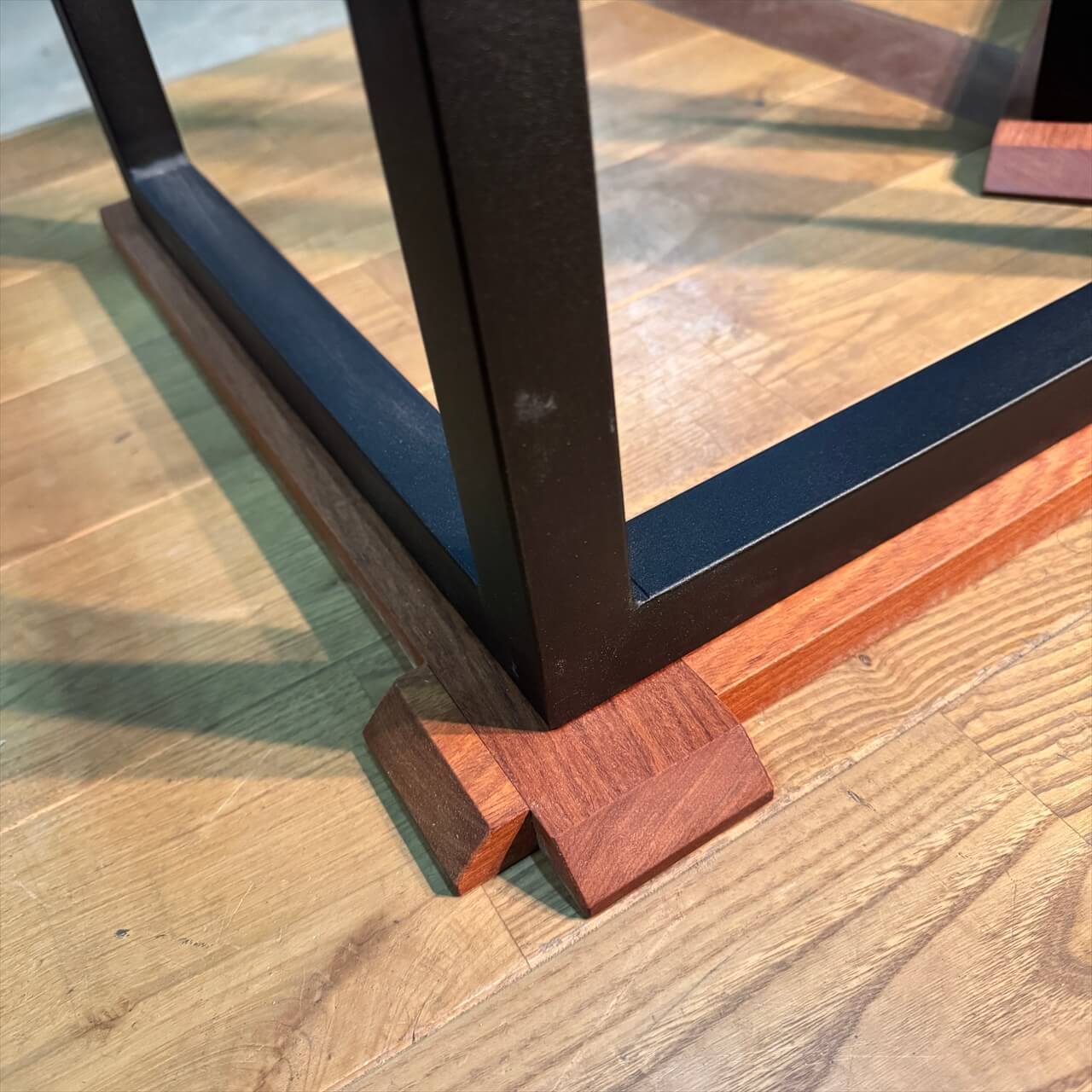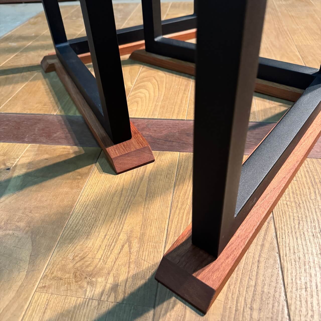 鉄の力強さに木の温もりが加わることで、天板の存在感をより際立たせてくれます。