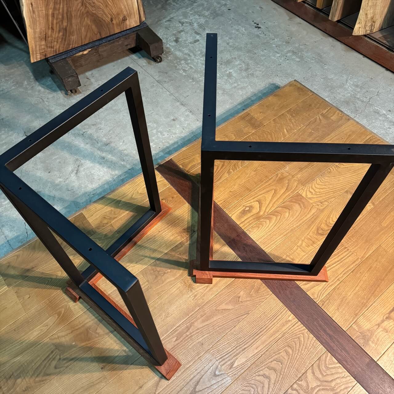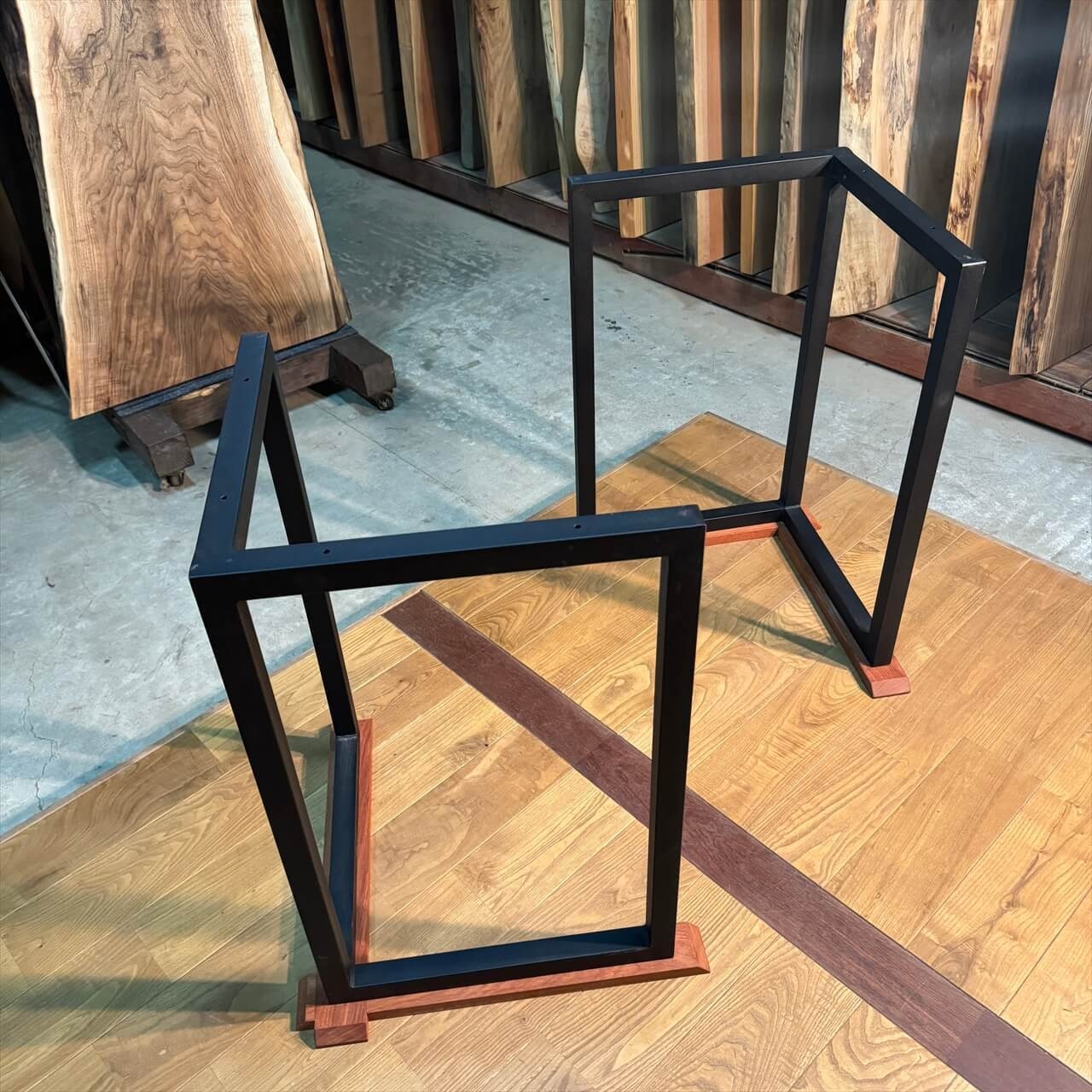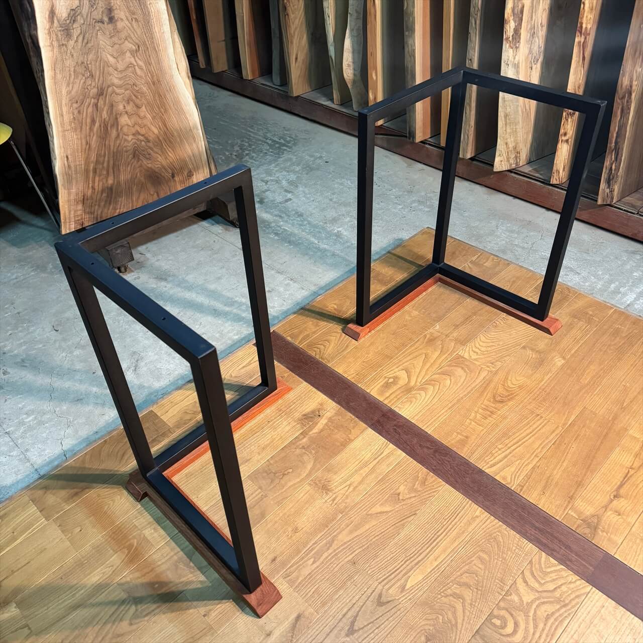 カウンターサイズからテーブルサイズの一枚板にちょうどいいアイアン脚が登場しました。
