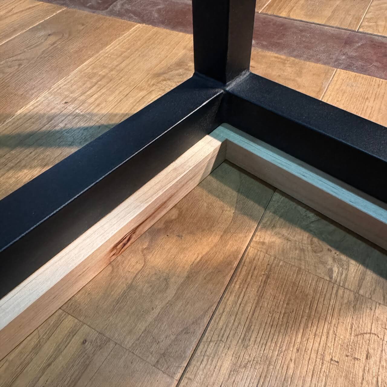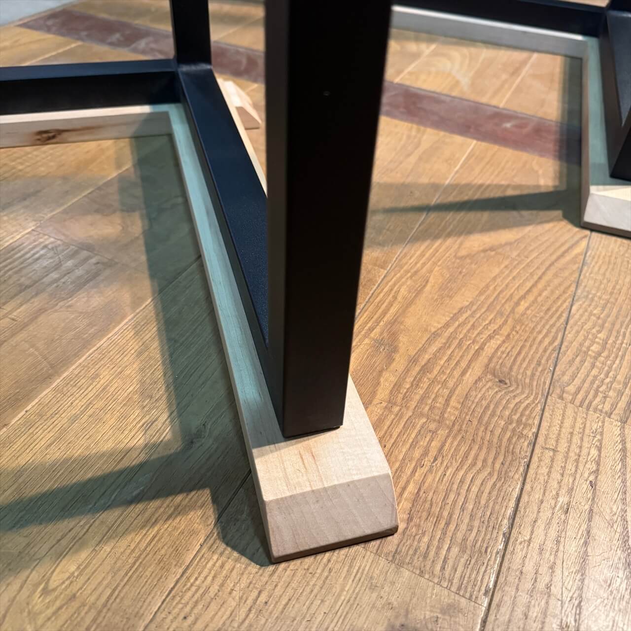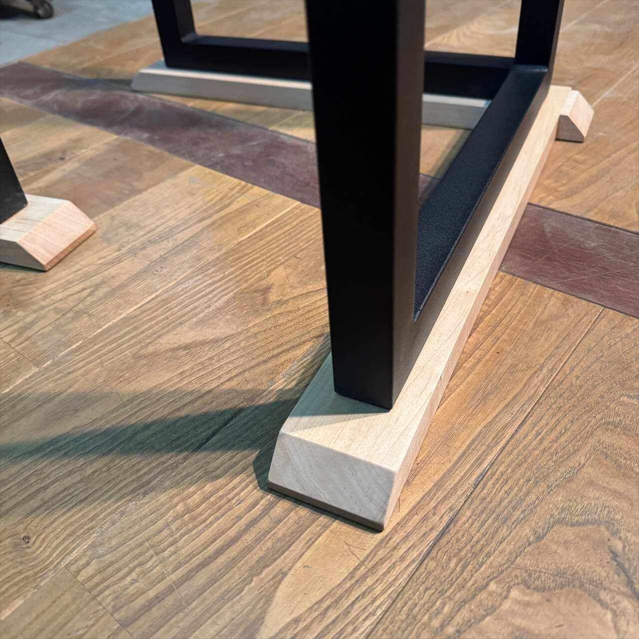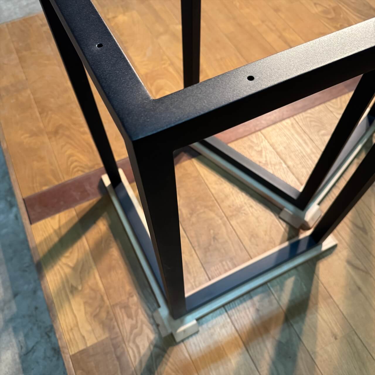 鉄の力強さに木の温もりが加わることで、天板の存在感をより際立たせてくれます。