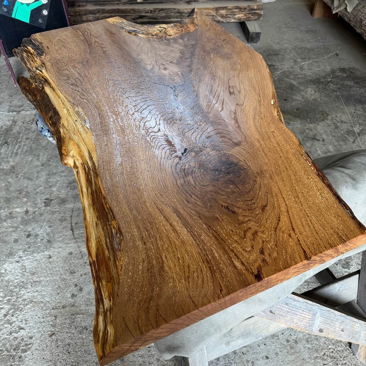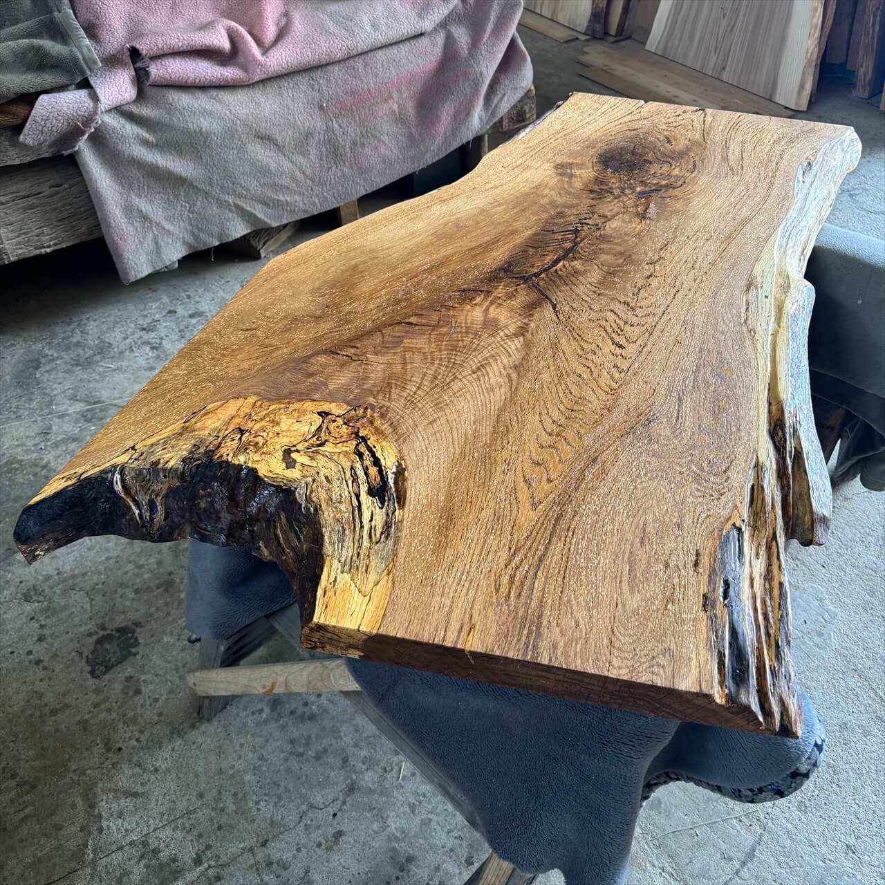 【朽ちとギリギリ熟成された二股の岩手県産ナラ一枚板】