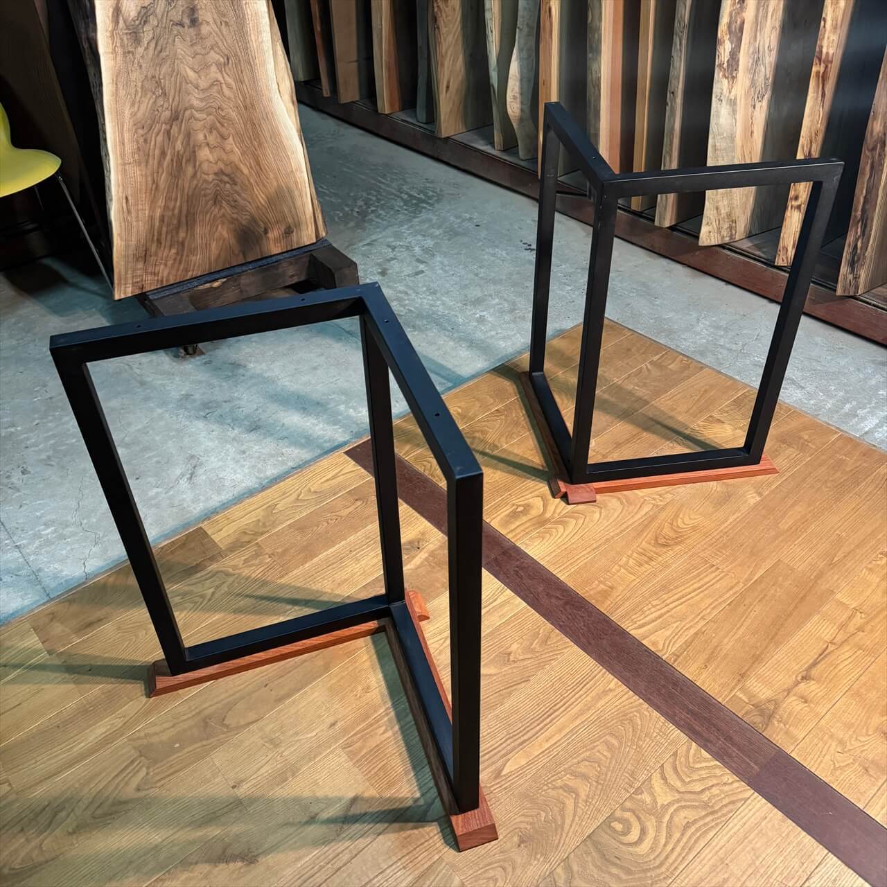 ※セット内容に含まれるアイアン脚のイメージとなります。【今回の特別セールのおつとめ品になるため、アイアン脚の下にある平板の樹種はおまかせとなりますので、ご了承ください。】