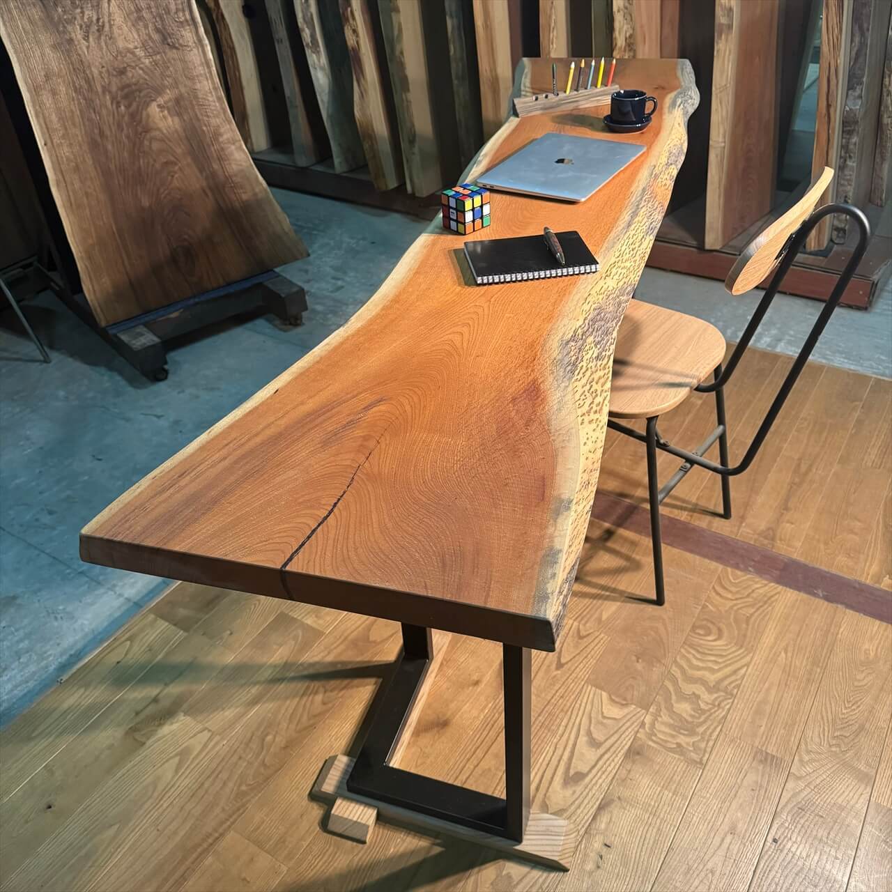 【さんもくウィーク限定特売セール品】【送料無料】一枚板&脚セット脚地 けやき一枚板【高樹齢】 1950×290~460×41㎜【オイル塗装 仕上げ済み】