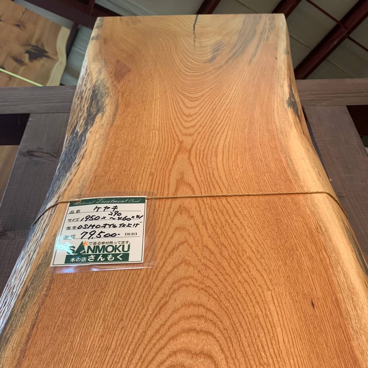 けやき一枚板【高樹齢】 1950×290~460×41㎜【オイル塗装 仕上げ済み】