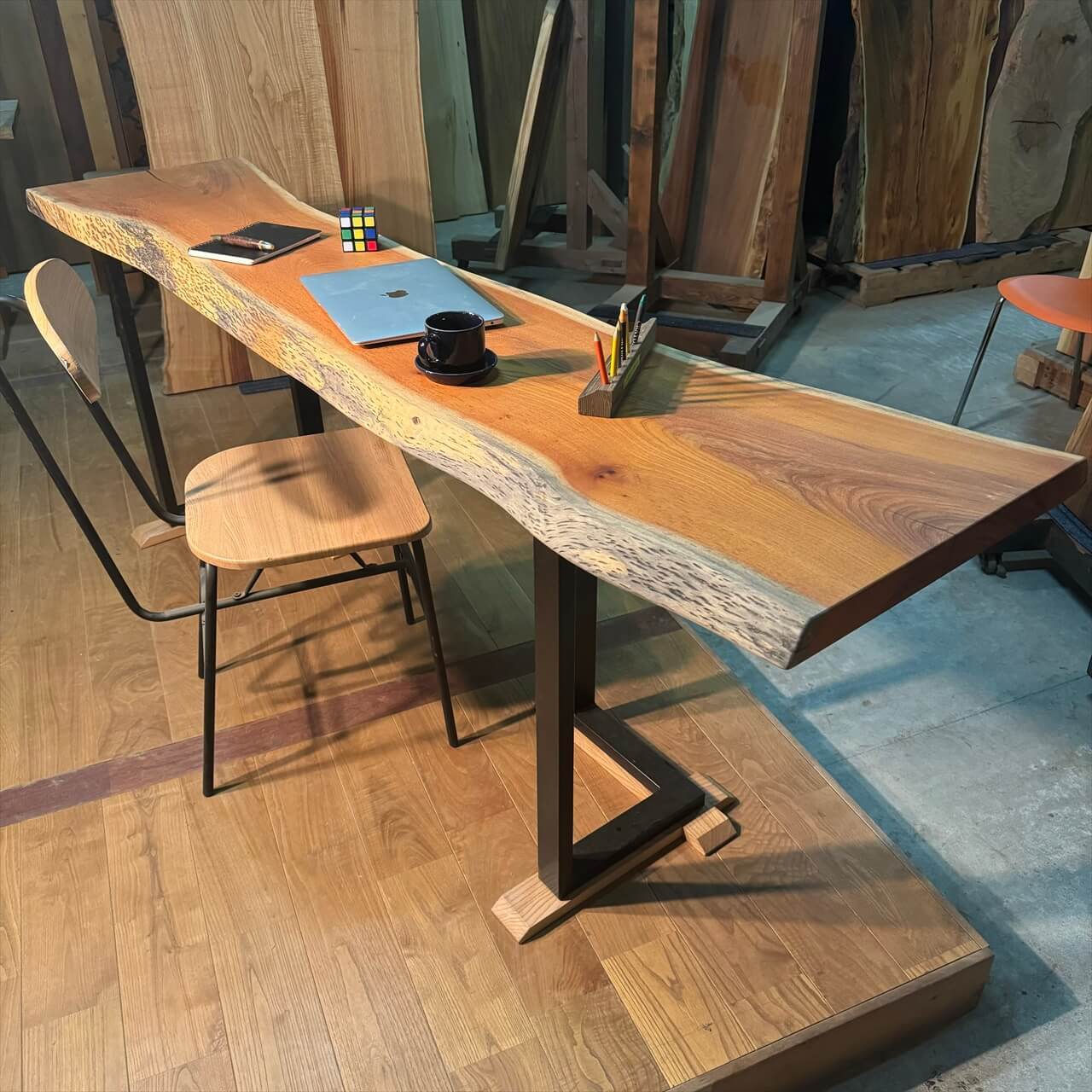 小ぶりで軽めな天板を置くだけで使うこともできますが、不安定な場合はビス止め等で固定してお使いになることをおすすめします。より安定感をお求めの場合は、ビス止めやボルトオンの加工を行ってご希望の一枚板を納品することもできます(別途、工賃が発生いたします)。