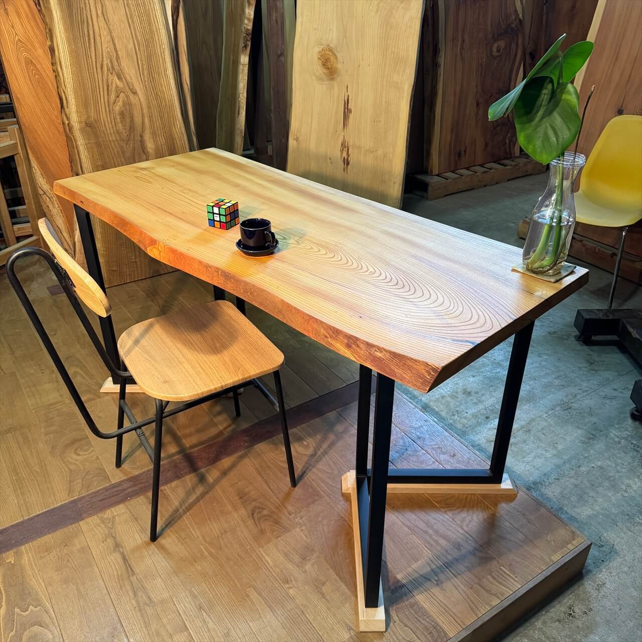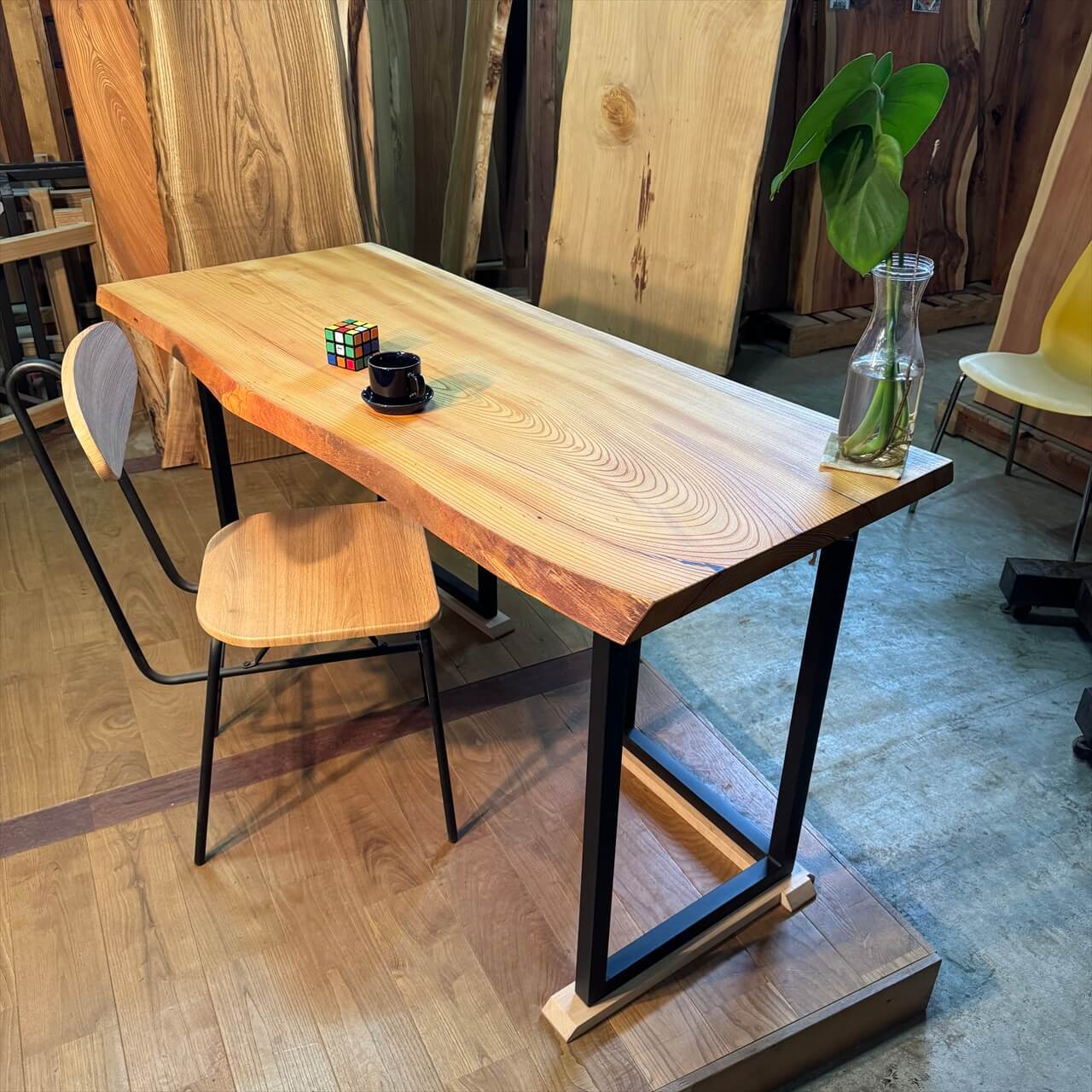 【さんもくウィーク限定特売セール品】【送料無料】一枚板&脚セット脚地グランデ けやき一枚板【岩手】1400×530~590×35㎜【オイル塗装 仕上げ済み】