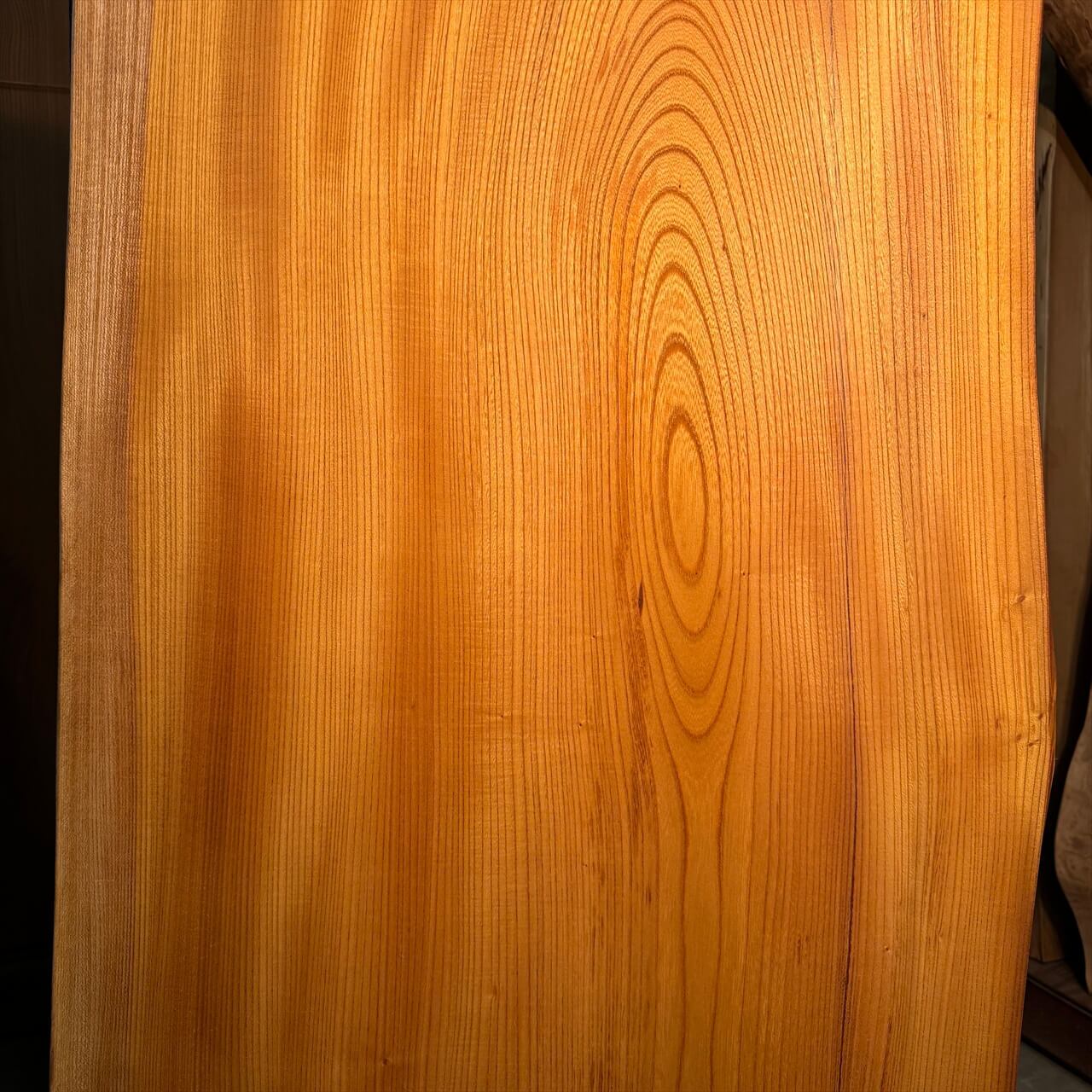 【不思議な赤身面皮が付いたケヤキ一枚板】
