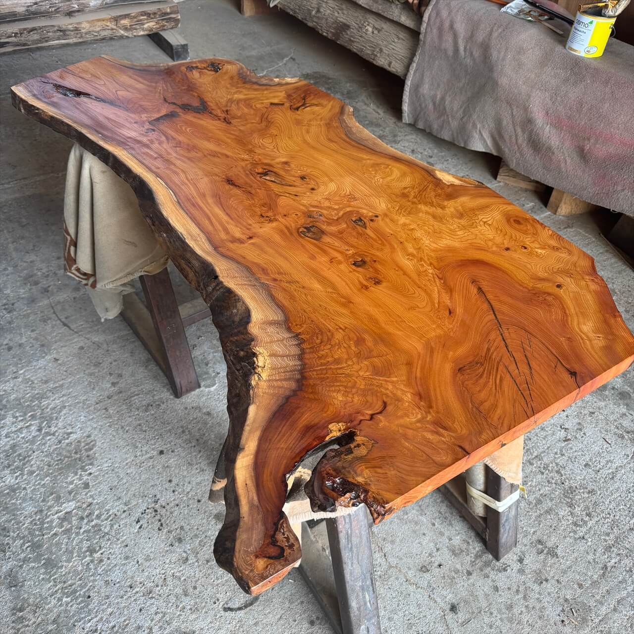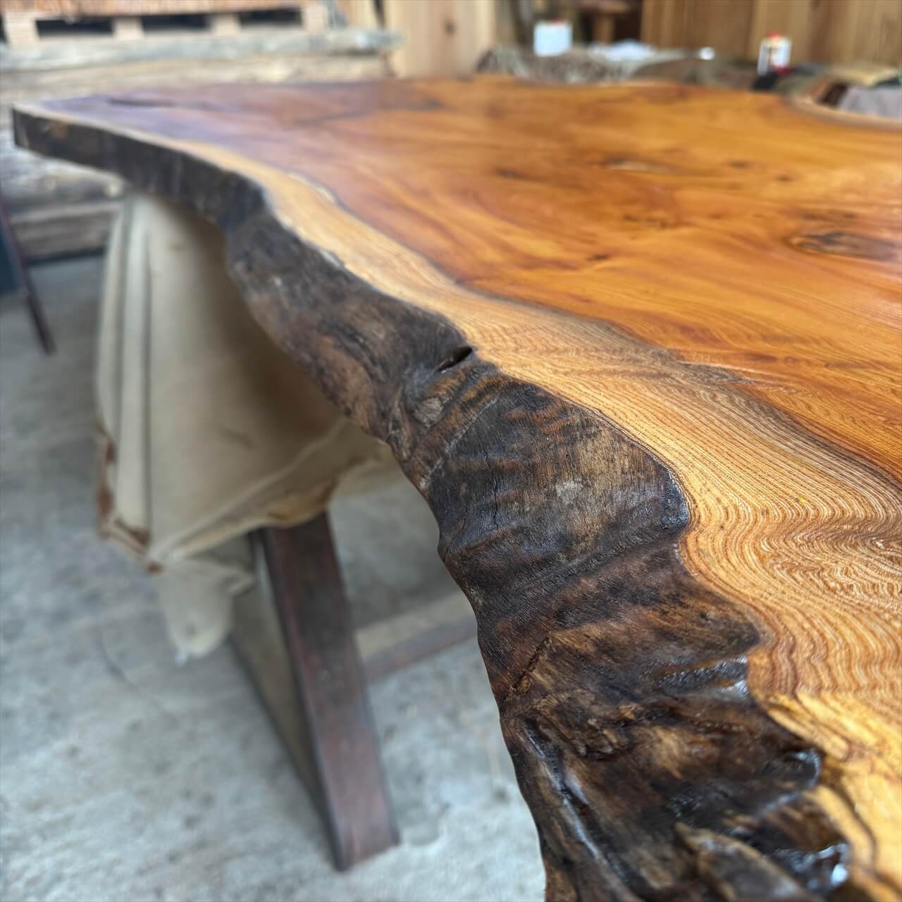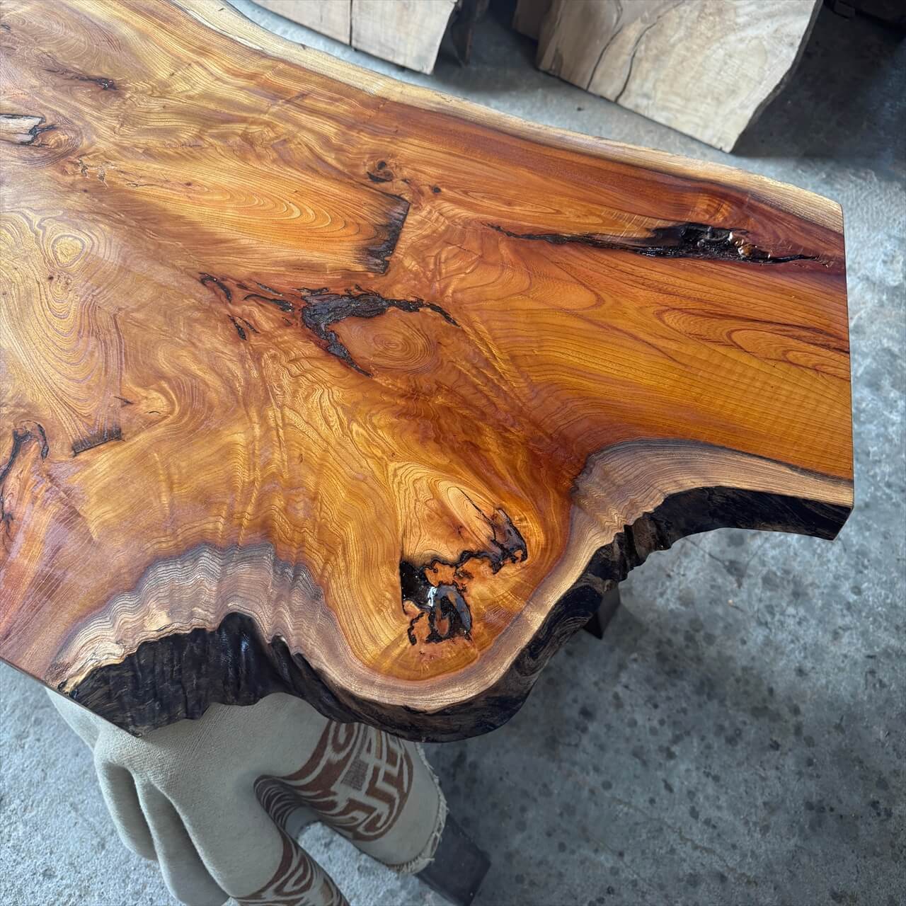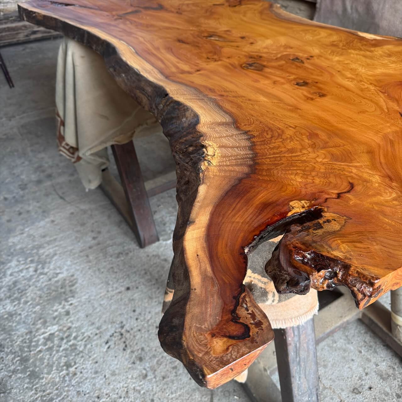そこにあるだけで、注目を浴びそうな異形を放つ、存在感タップリな一枚板に仕上がりました。