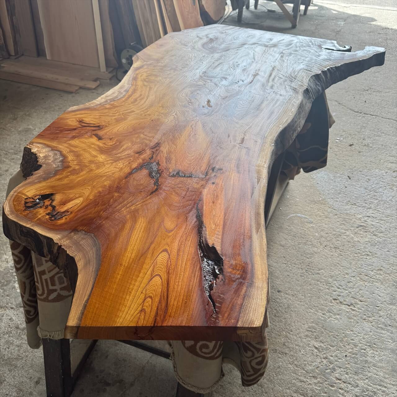 岩手県産のイビツなケヤキ原木から製材された一枚板です。