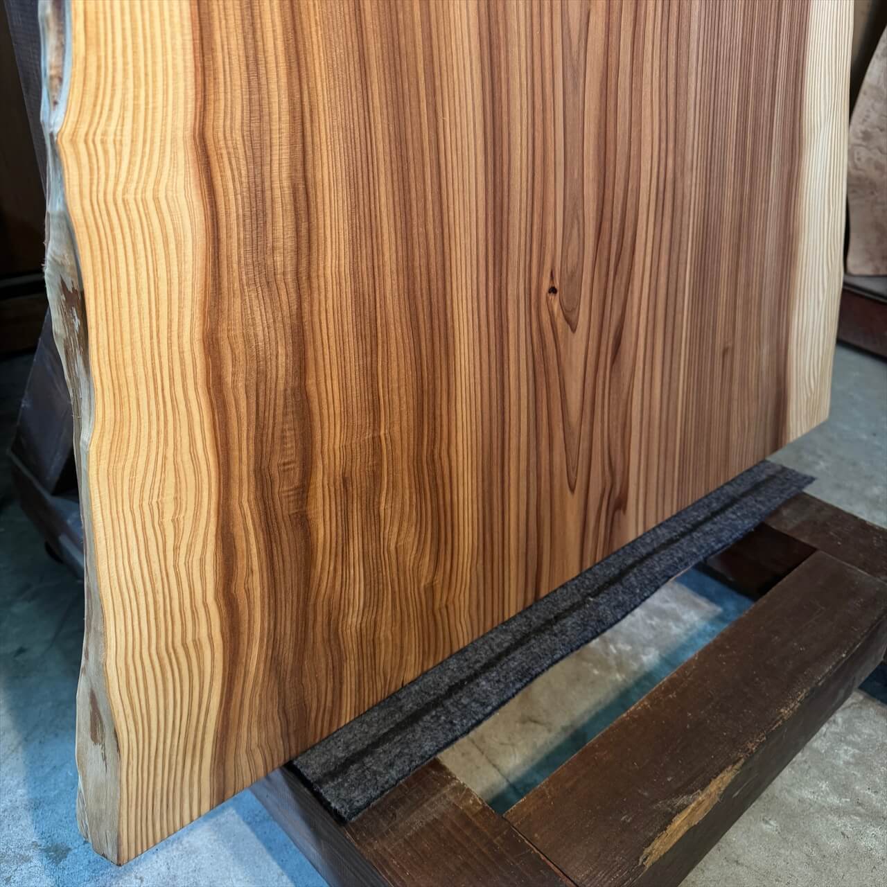 小ぶりで末広がりなカタチの秋田県産スギ一枚板です