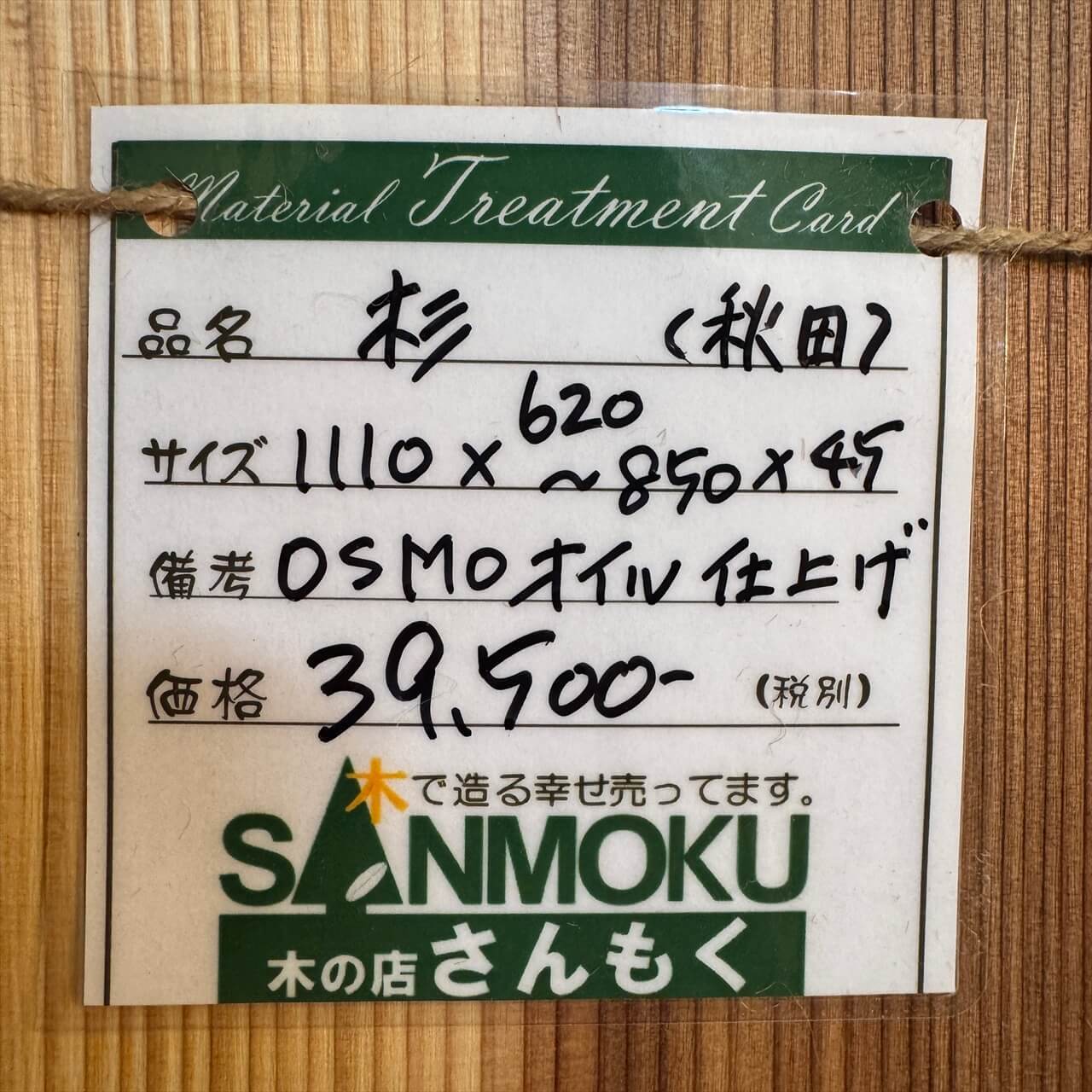 すぎ一枚板【秋田】1110×620~850×45㎜【オイル塗装 仕上げ済み】