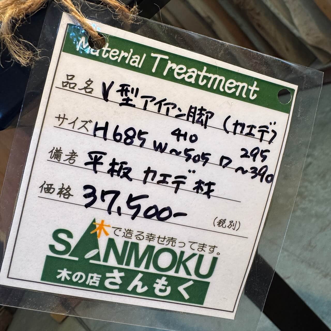 【テーブル脚】V型アイアン脚 脚地【平板カエデ材】H685 W410~505 D295~390㎜