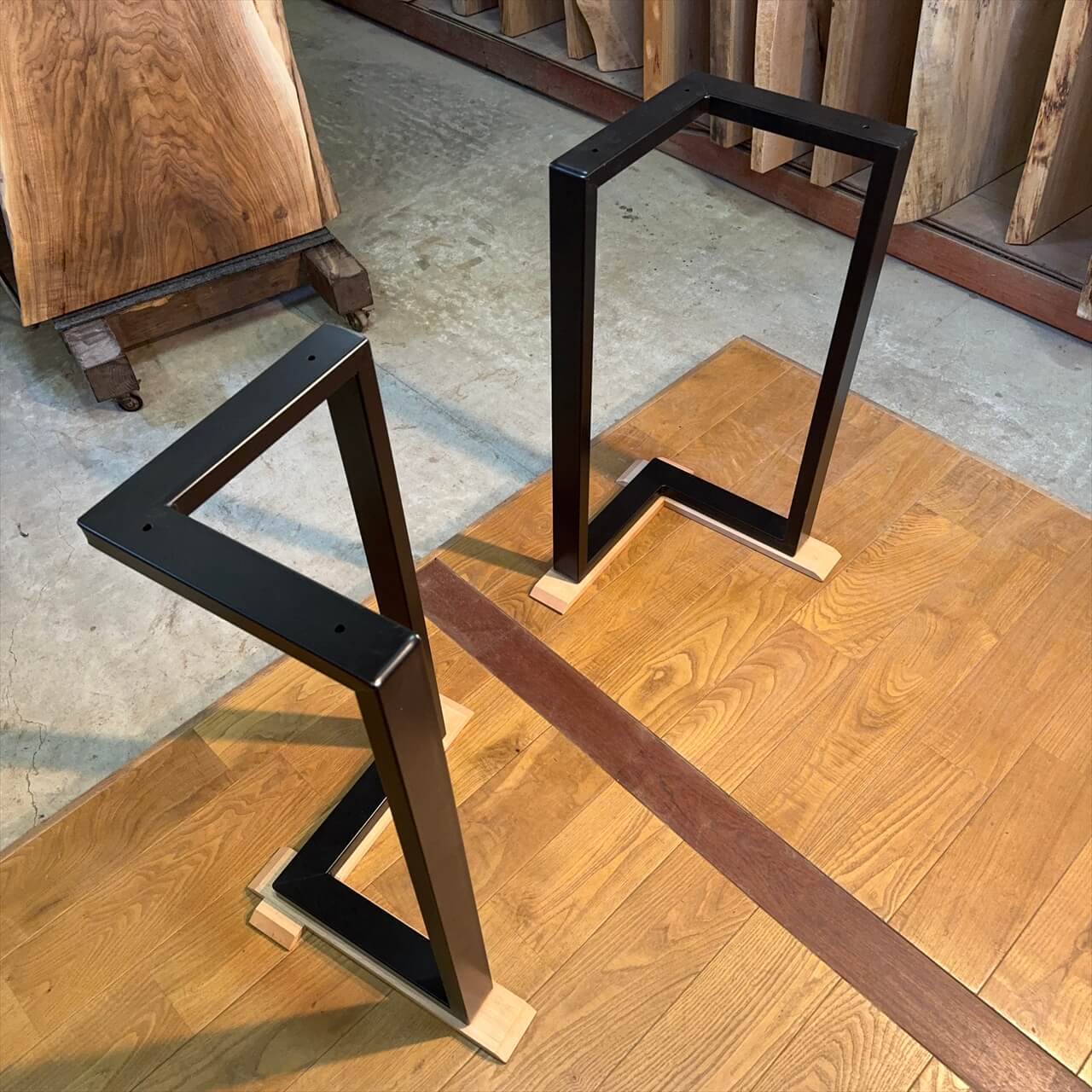 カウンターサイズからテーブルサイズの一枚板にちょうどいいアイアン脚が登場しました。