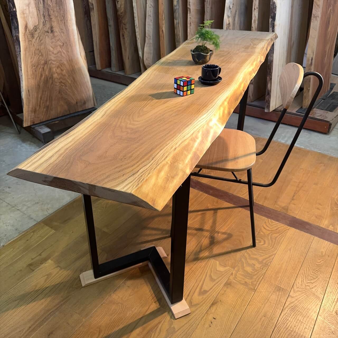 カウンターテーブル、PCデスク、カフェカウンターなど、使いやすさはもちろんのこと、一枚板との相性も抜群です。