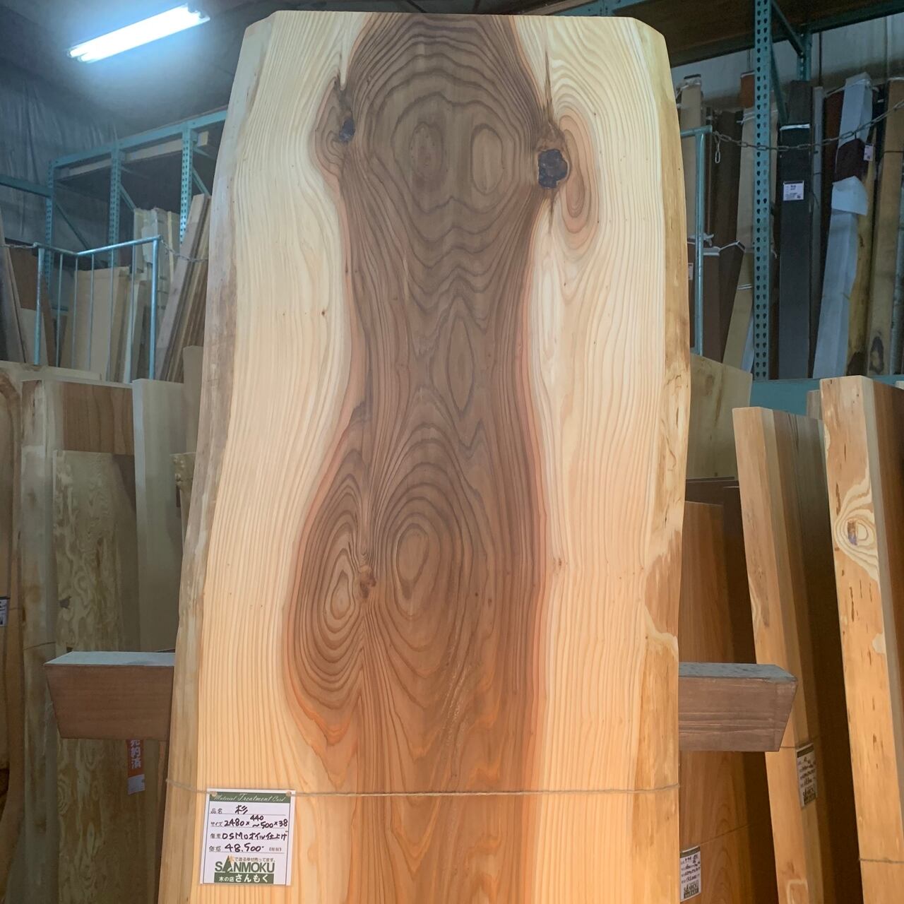 すぎ一枚板 2480×440~500×38㎜【オイル塗装 仕上げ済み】