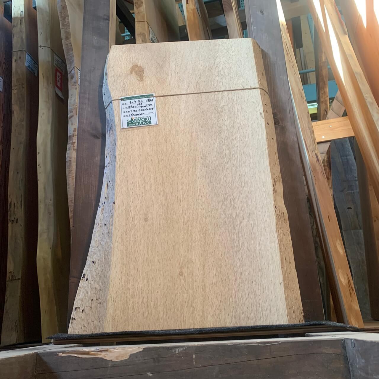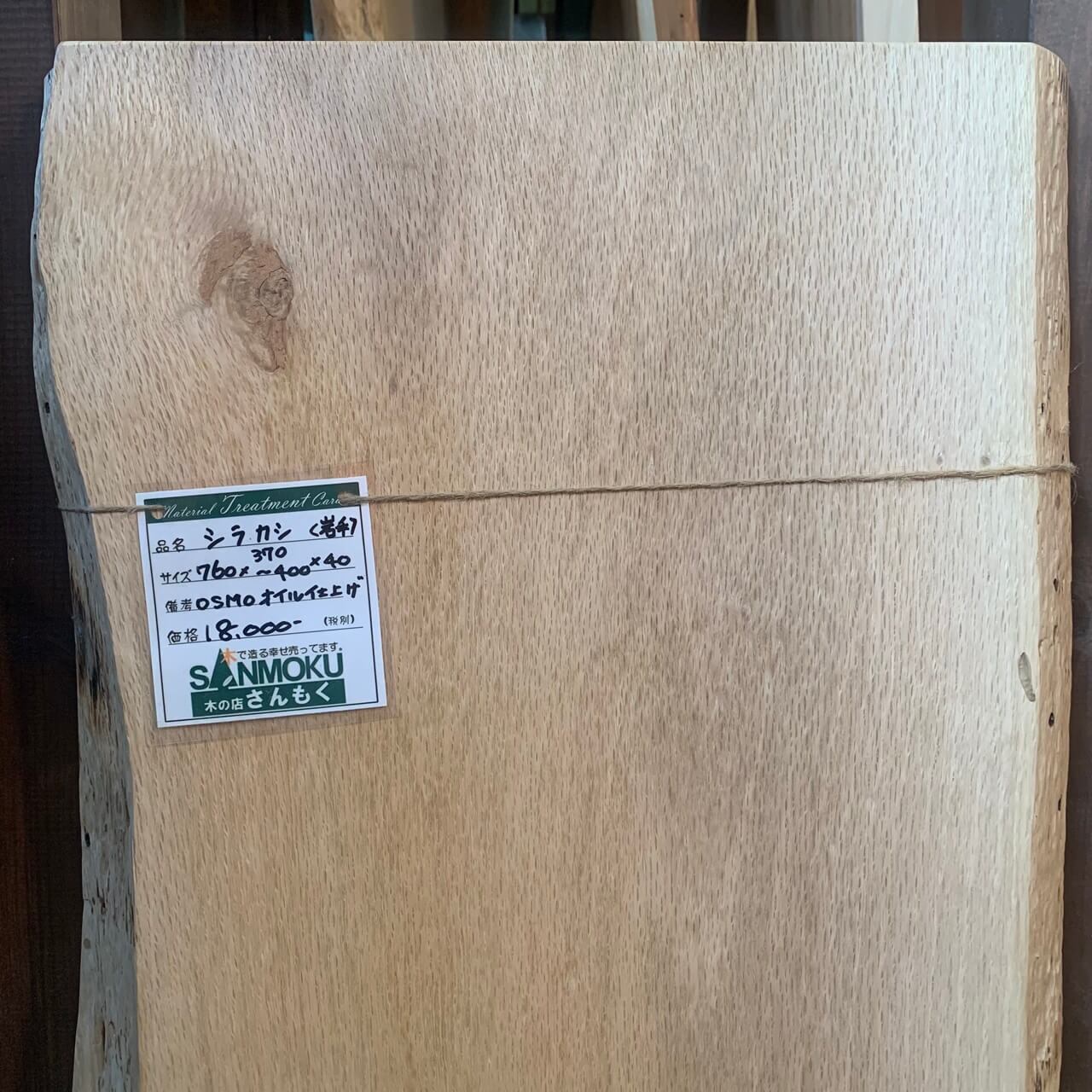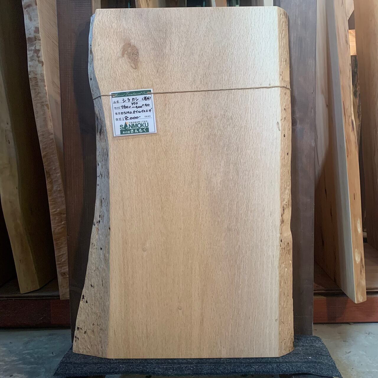 シラカシ一枚板【岩手】760×370~400×40㎜【オイル塗装 仕上げ済み】